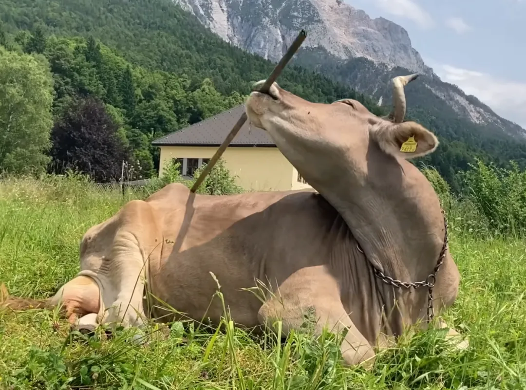 奶牛该怎么挠后背的痒?奥地利一头名叫维罗妮卡的奶牛给出了答案,而这个答案或将彻底改变人类对家畜的认知。过去十年间,主人发现维罗妮卡会时不时用嘴叼起树枝,调整树枝的端部,去挠那些自己身体够不到的部位。