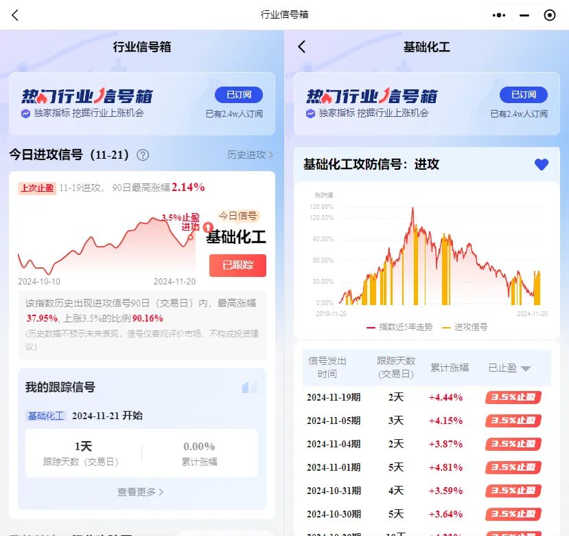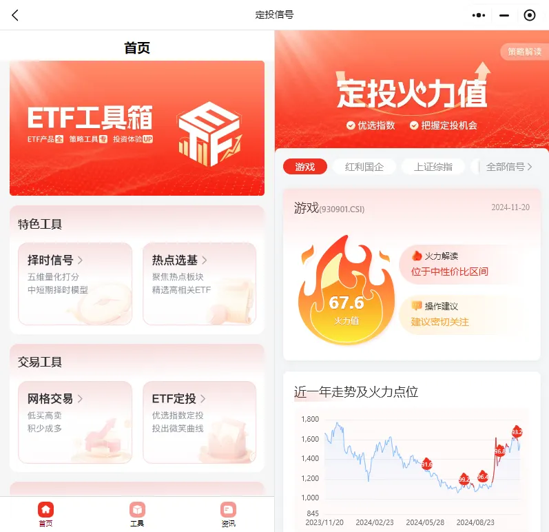 鹏华的信号箱有点智能交易的感觉。你可以跟踪一个行业指数,并且订阅买点,等到了买点会提示你买进,到了止盈点会提示你卖出,对于小白基民来说,可以跟着做,比较省心吧。