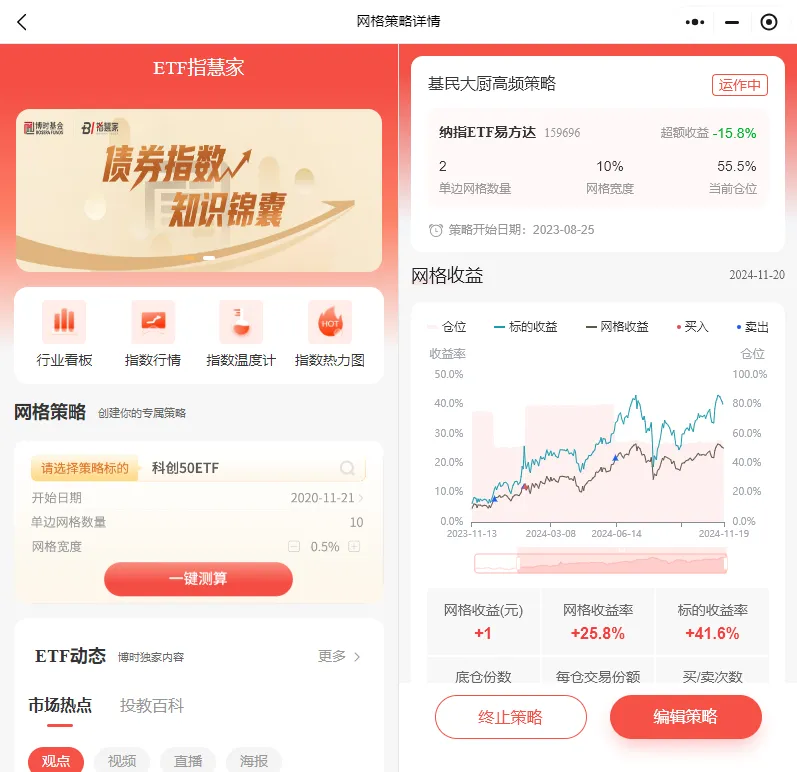 ETF指慧家是指数基金的网格交易回测工具,你可以根据自己的资金量,能承受的风险偏好,能接受的亏损幅度,你对行业指数的判断和分析,来设定网格交易的规则,然后就可以测试策略的收益表现。