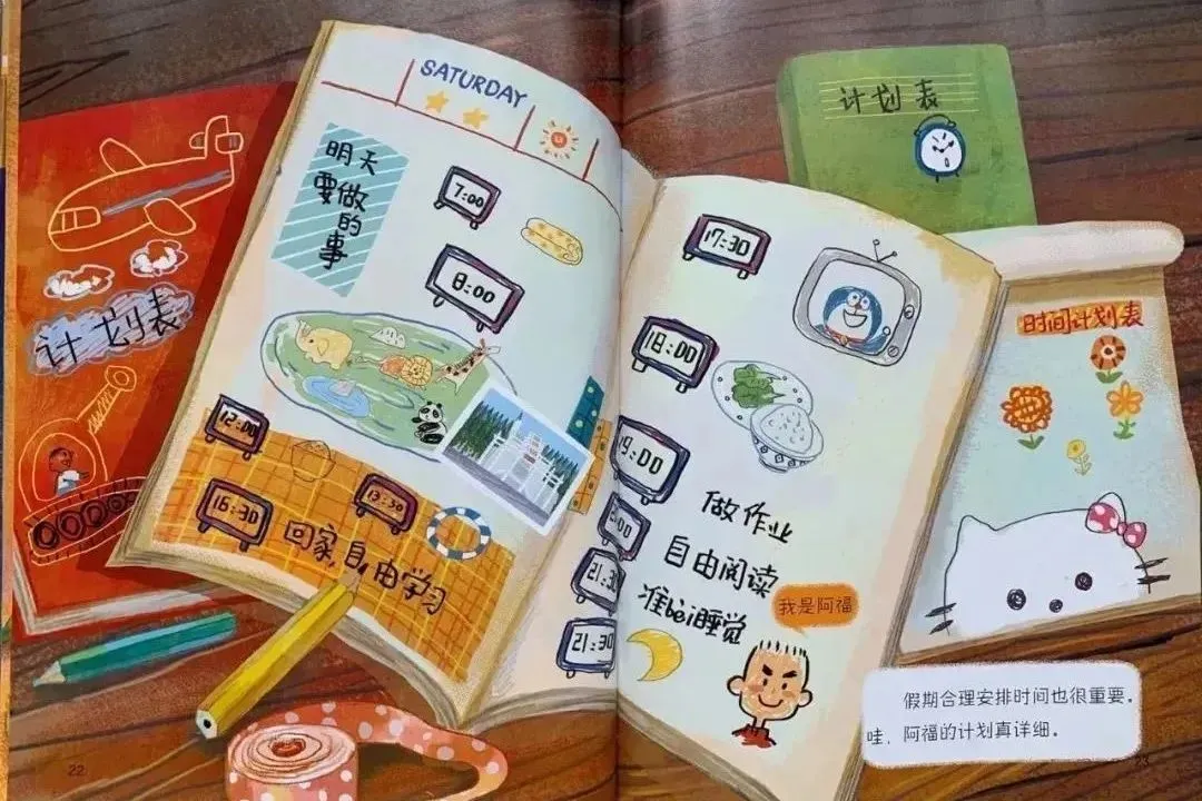 假期合理安排时间也很重要。哇,阿福的计划真详细。