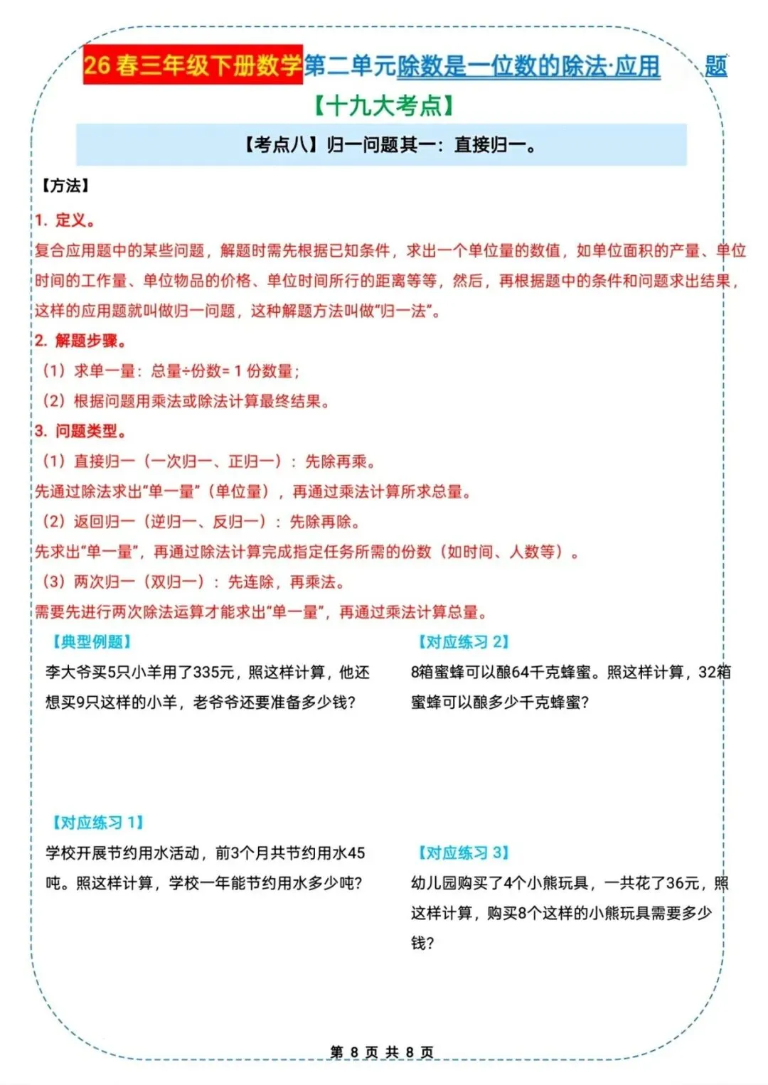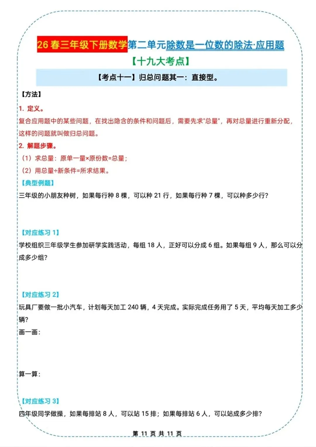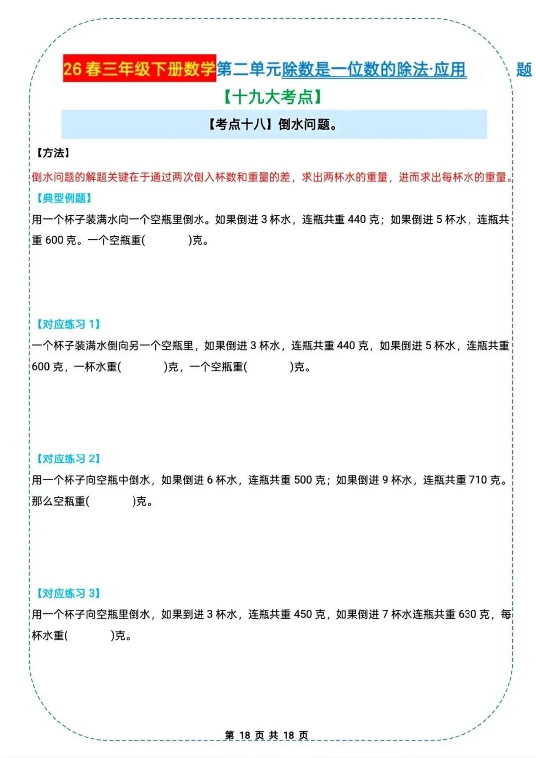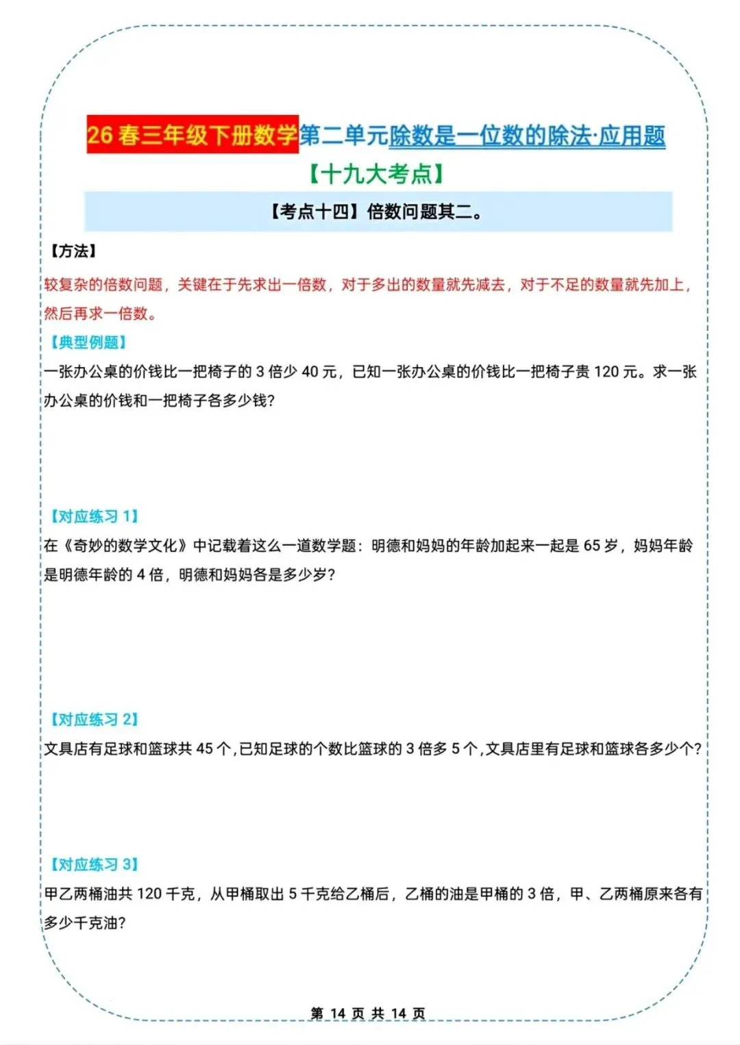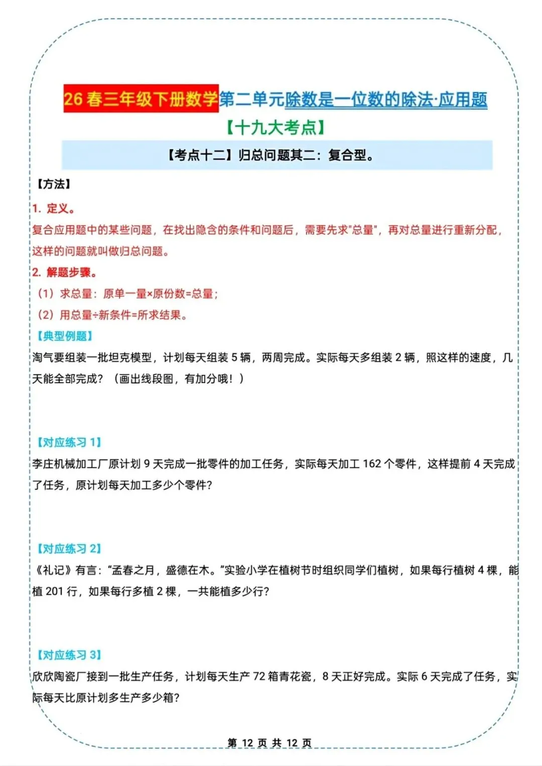 🌟2026春三年级下册通用版数学,除数是一位数的除法|应用题十九大考点专项练习,需要的家长朋友抓紧领回去,给孩子练起来吧💪!