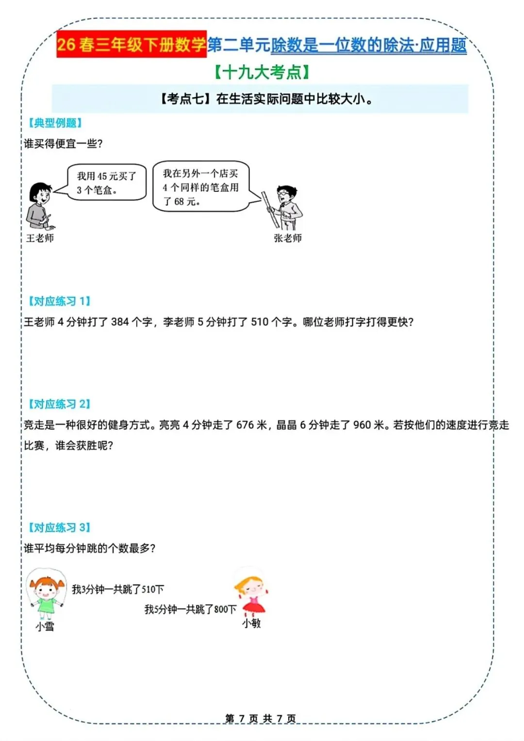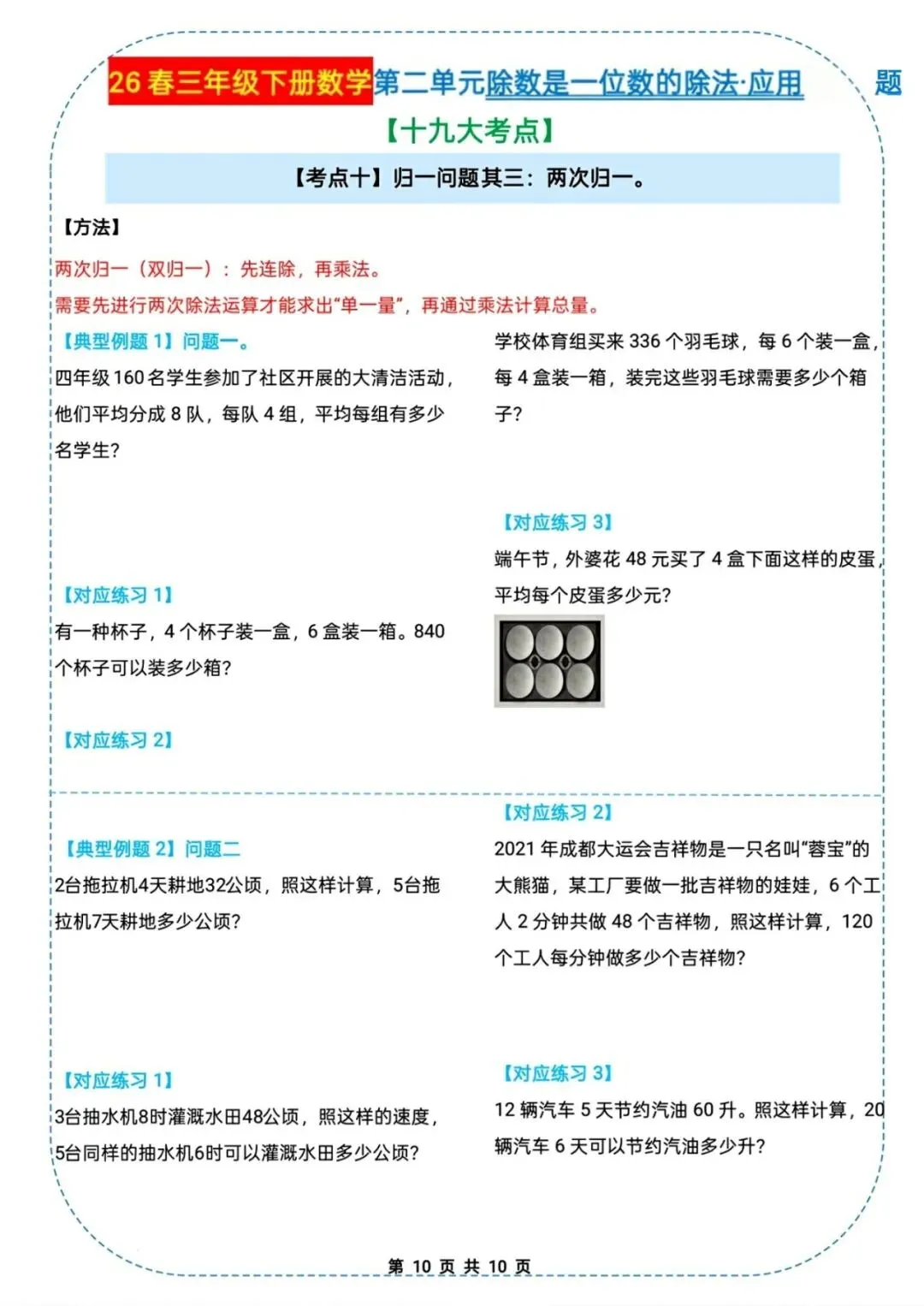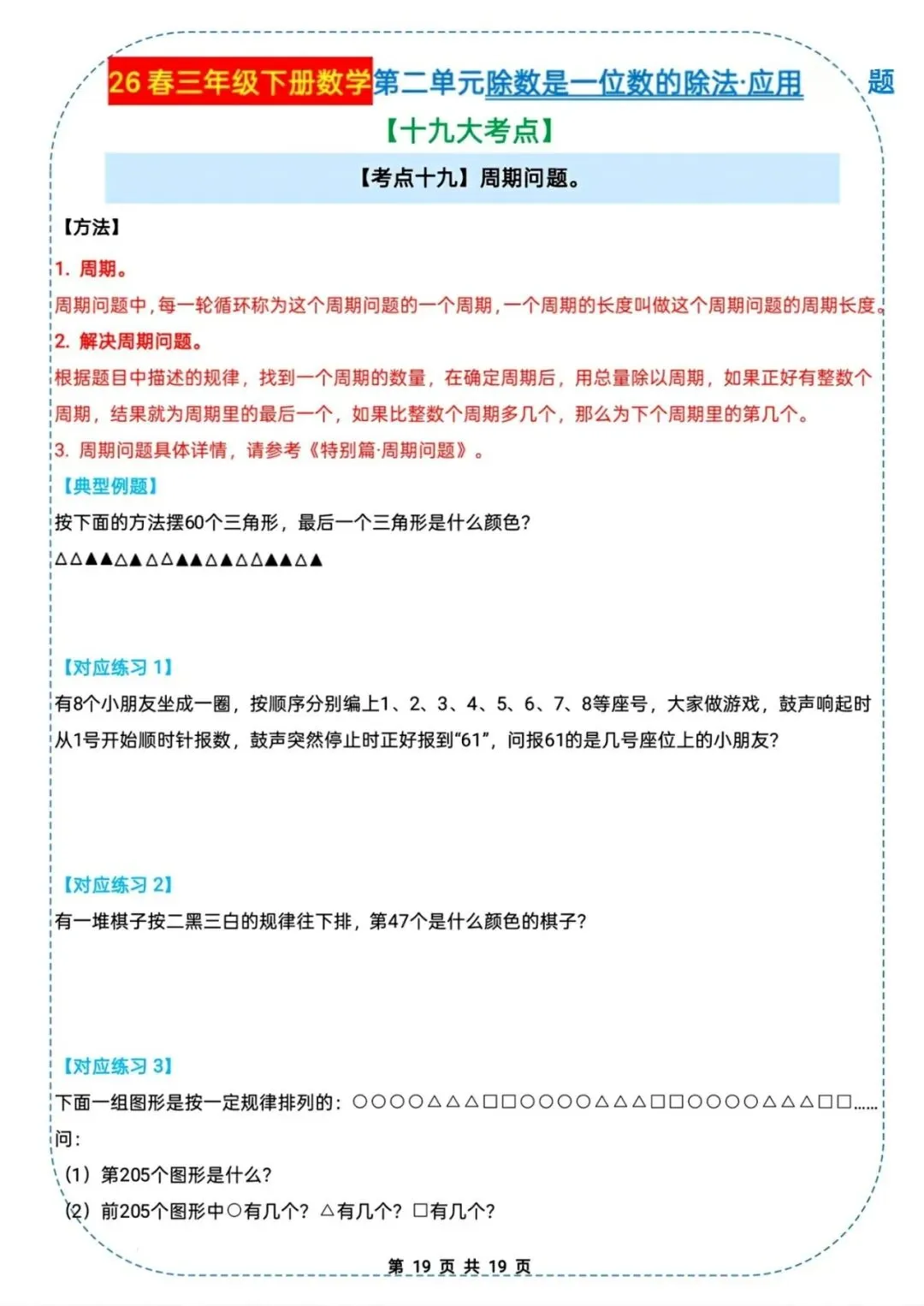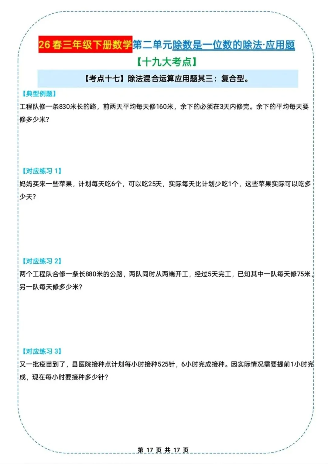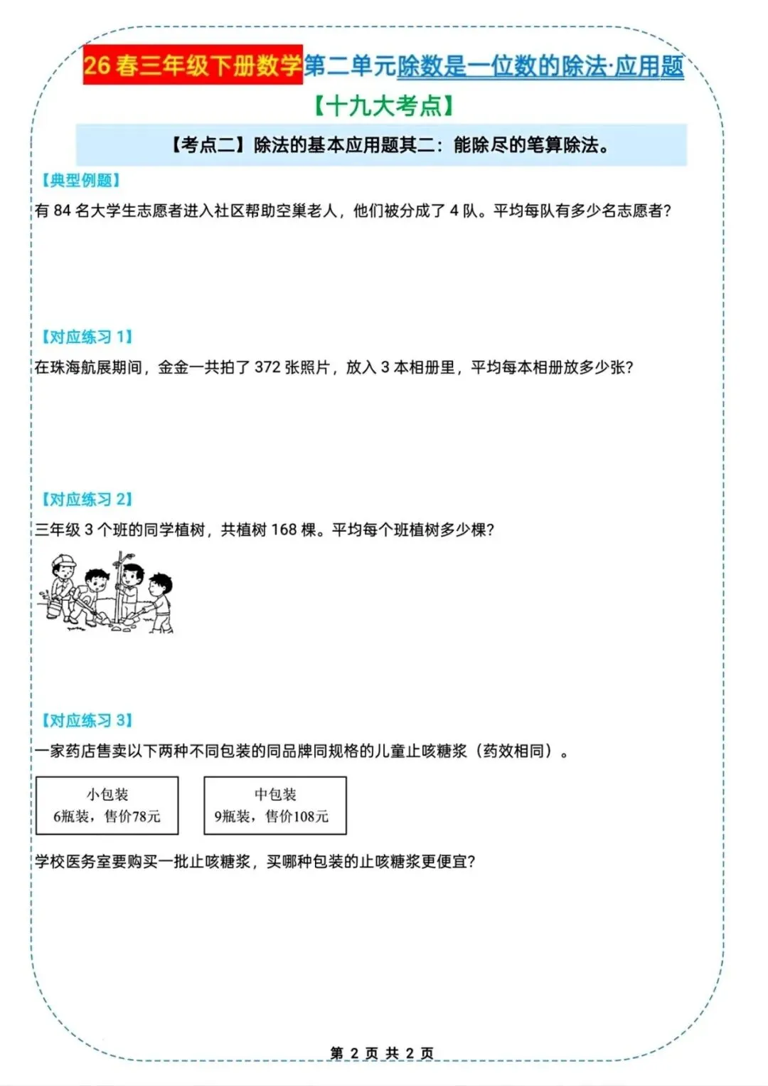 🌟2026春三年级下册通用版数学,除数是一位数的除法|应用题十九大考点专项练习,需要的家长朋友抓紧领回去,给孩子练起来吧💪!