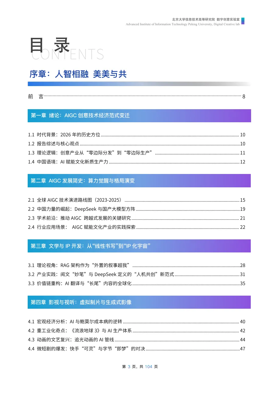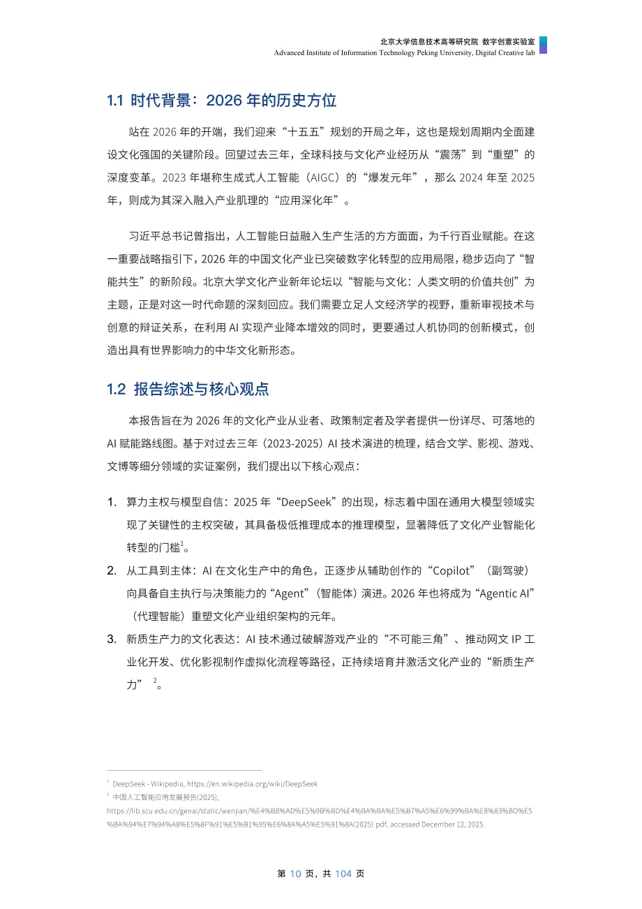 《美美与共:2026 AI赋能文化产业发展报告》由北京大学信息技术高等研究院数字创意实验室发布,报告由《AI创意业态透视》与《AI工具全景指南》两部分构成,分别从理论框架与实践工具切入,为行业提供体系化参考。