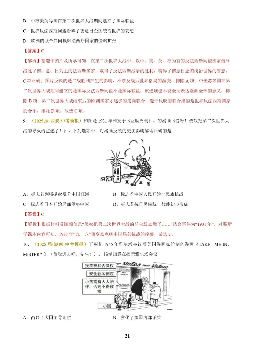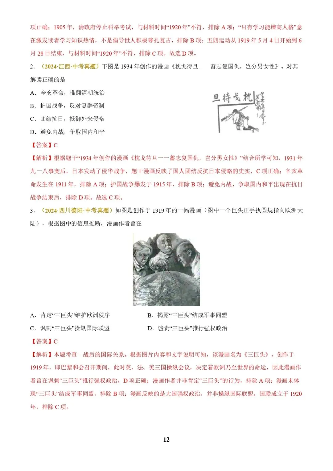 中考历史复习 | 专题05 图表、漫画类选择题(解析版)