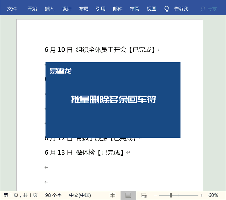 记住要全部替换两次才能清除这些多余的回车哦!