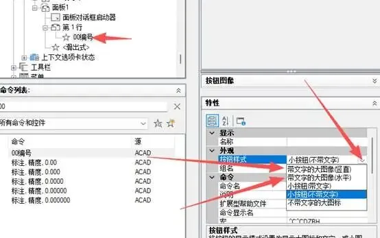 8.点面板中复制粘贴过来的命令,特性中上滑找到外观,改为带文字的,水平竖直任意