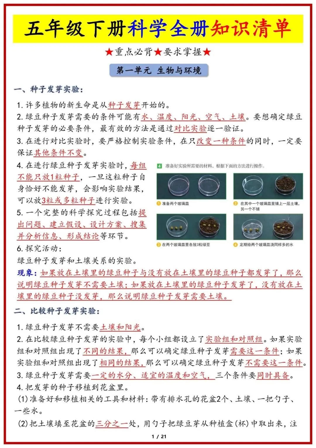 大家好,我是小敏妈妈,今天为大家分享的是;新教科版五年级下册《科学》全册知识点整理、考点归纳、复习必备,共21页【完整电子版可下载打印】