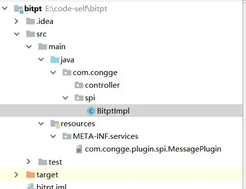 接下来就是插件化机制中具体的SPI实现过程,两个模块的实现步骤完全一致,挑选其中一个说明,工程目录结构如下: