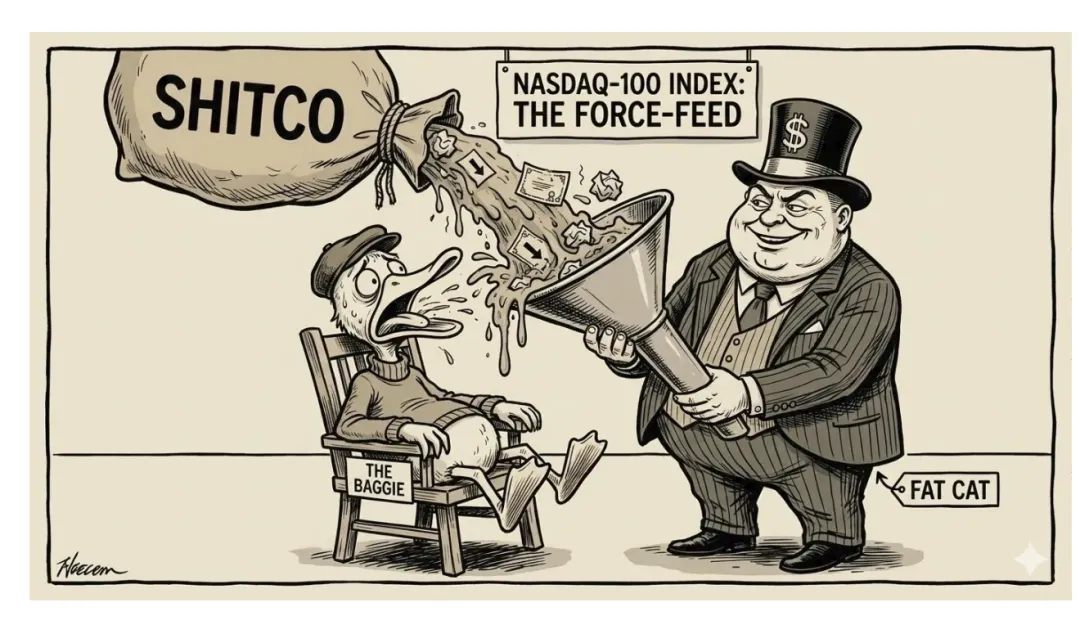 文章批评纳斯达克为迎合SpaceX上市而修改纳斯达克100指数规则,提议允许新上市公司15个交易日后快速入指,并对低流通股(<20%)给予5倍权重乘数。这将导致被动基金被迫以虚高价格买入股票,造成市场扭曲和价格泡沫,使普通投资者受损而内部人士获利。