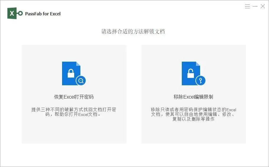 2.选择“移除Excel编辑限制”或“找回打开密码”模式。