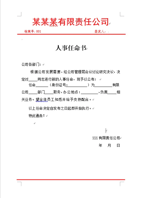 人事任命书模板word电子版,可编辑可下载 人事任命书模板word电子版,可编辑可下载,部分内容预览如下,完整版下载方式见文末。 资料下载地址:(手机端请长按下方二维码识别,电脑端请用手机微信扫描识别)