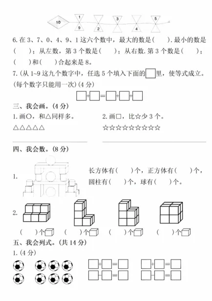 一年级(上)数学 期中拔尖测试卷,PDF电子版,可打印,免费下载
