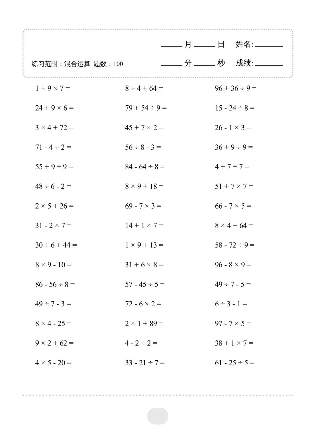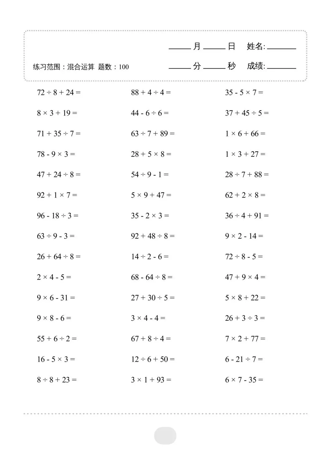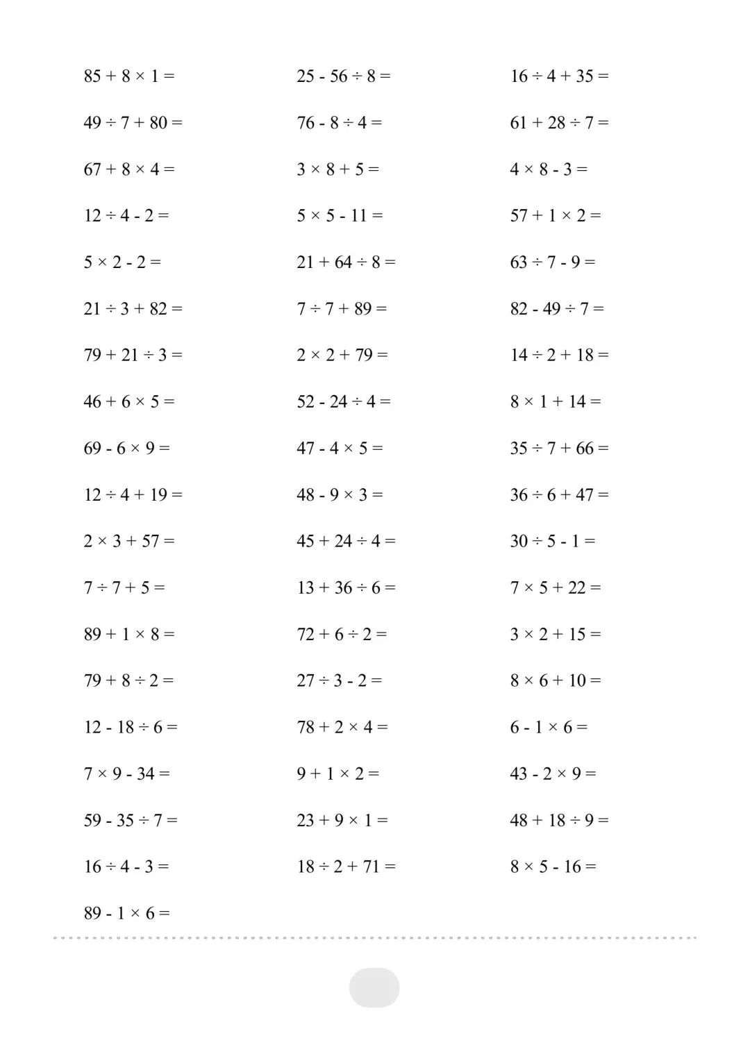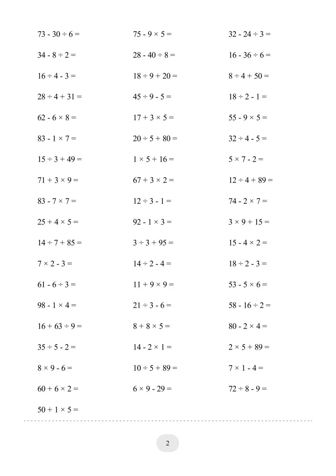 二年级(下)数学混合运算,电子版可下载免费