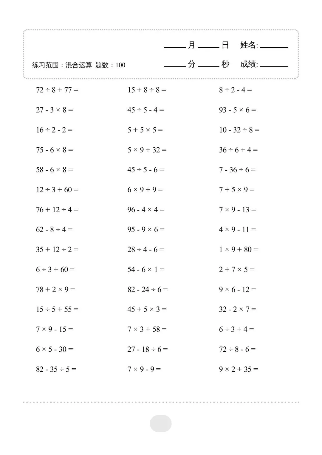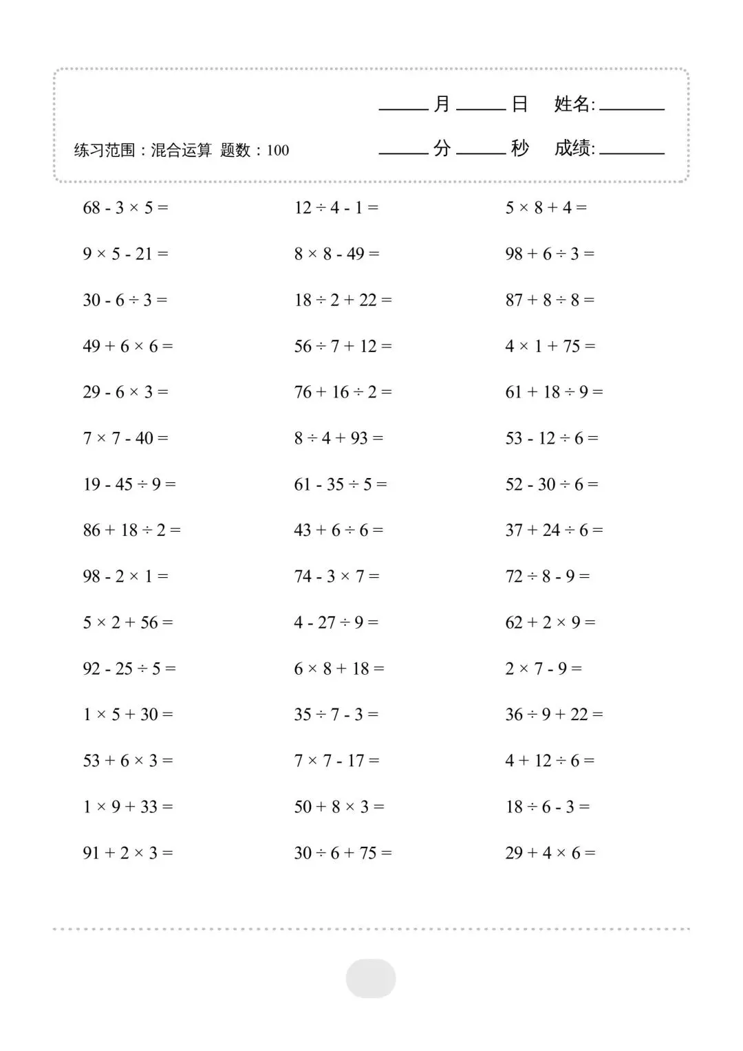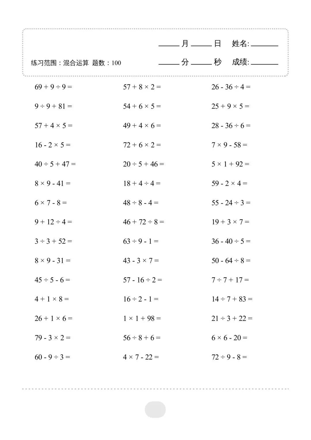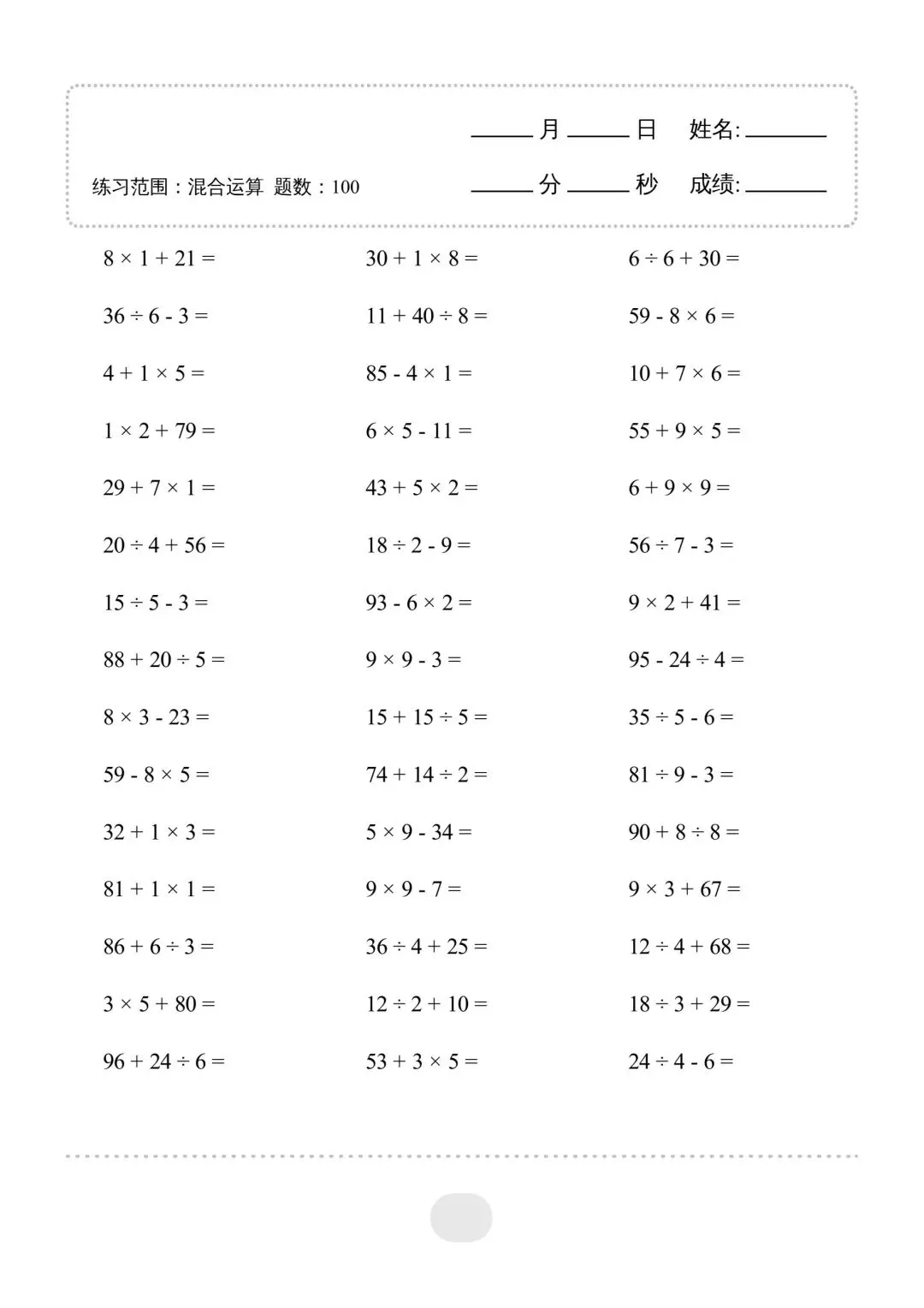 二年级(下)数学混合运算,电子版可下载免费