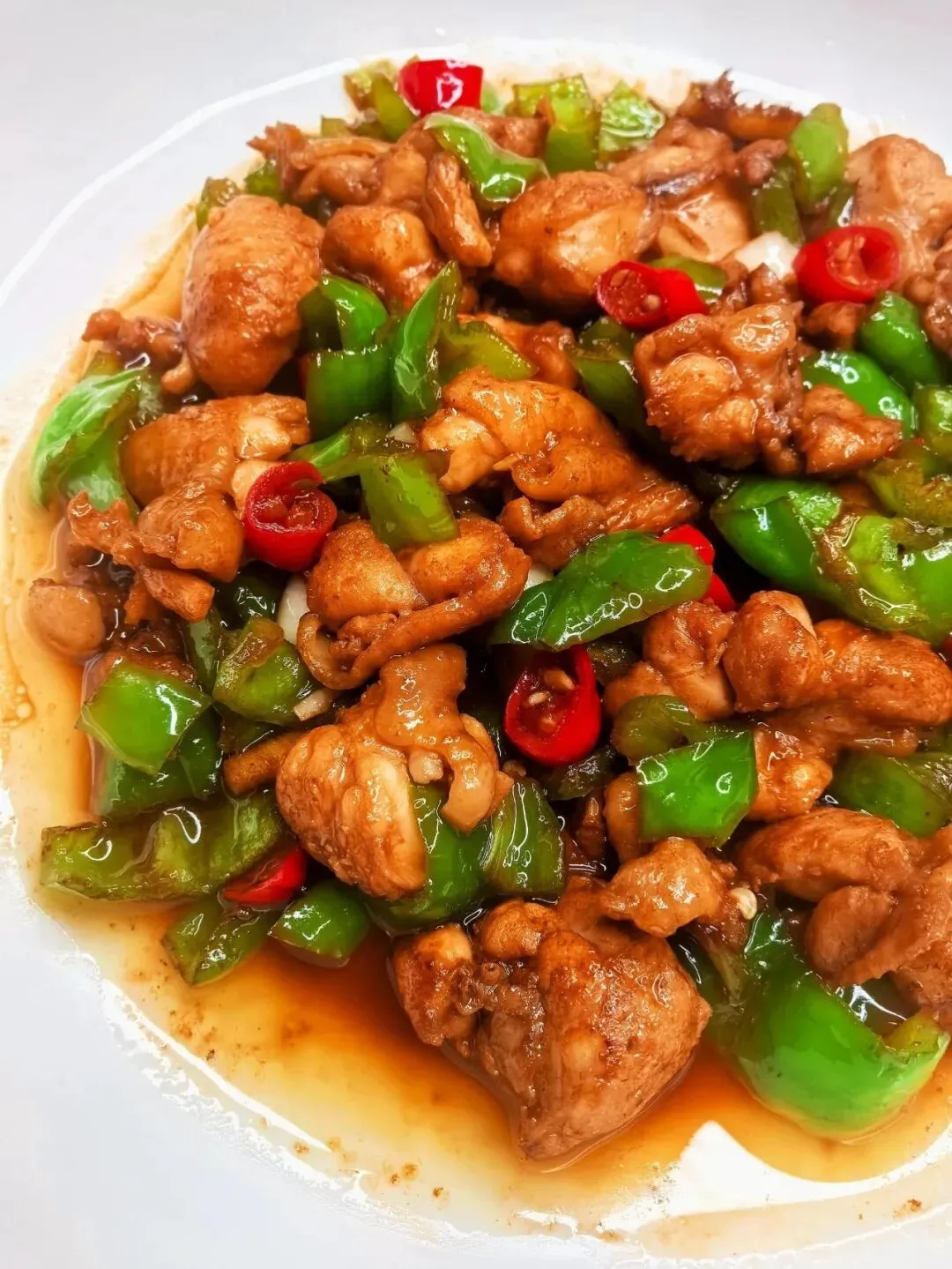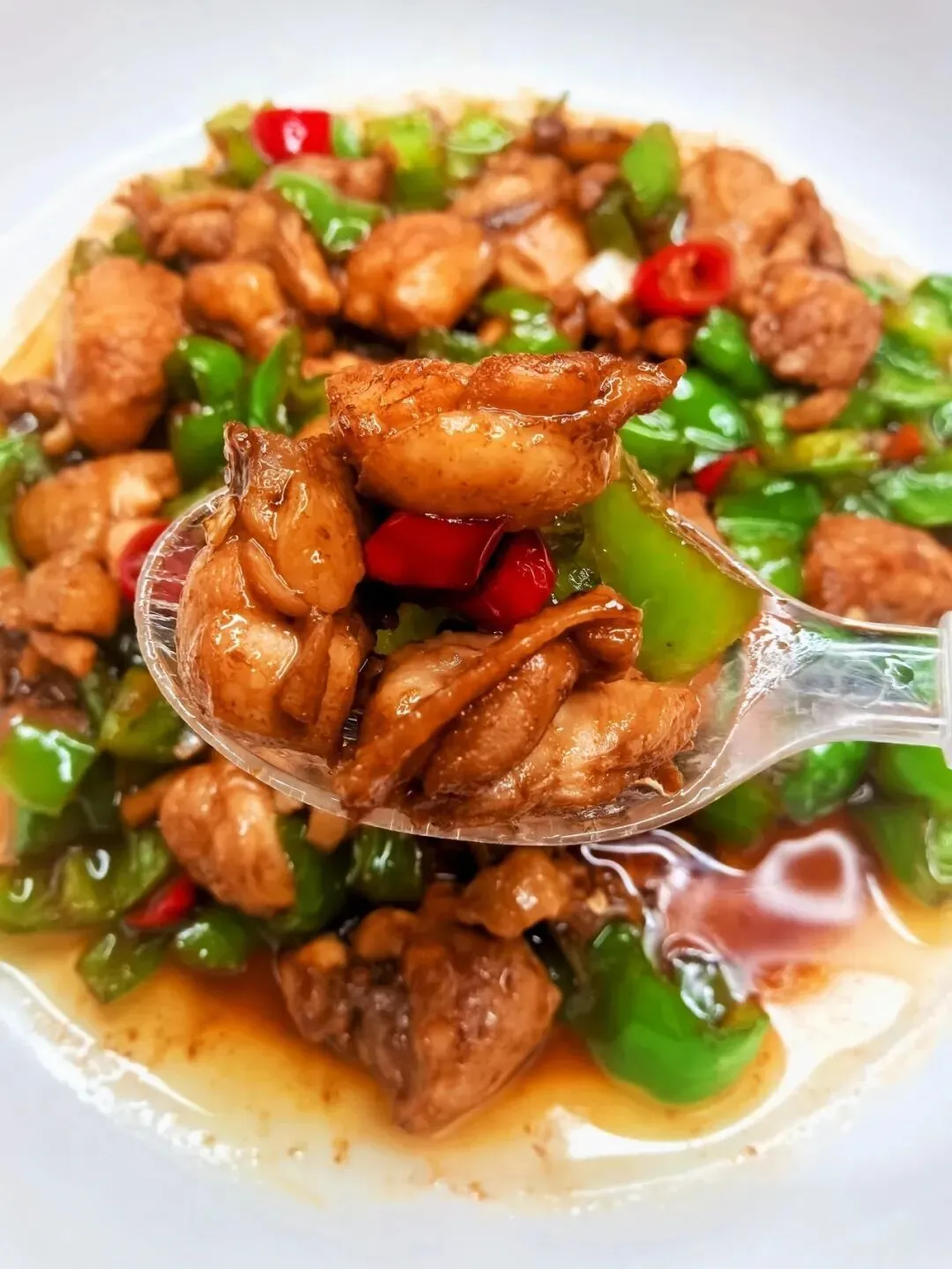 鲜嫩多汁的鸡腿肉裹满浓郁酱汁,搭配爽脆的青红辣椒,一口下去香辣过瘾,做法简单到厨房小白也能轻松拿捏~