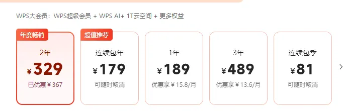 如果PPT需求大,笔格PPT的99元年费很划算/WPS AI大会员也非常不错 -