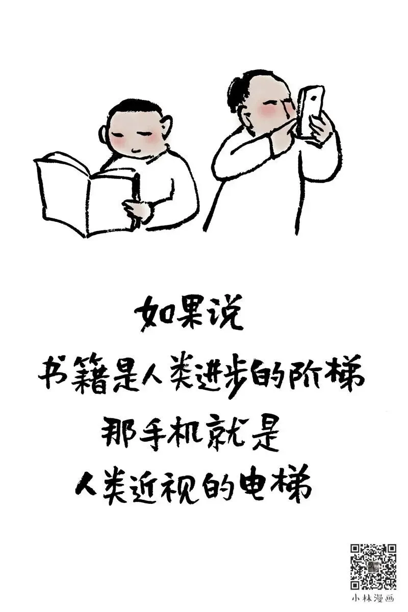 一个孩子在看书,另一个大人举着手机,眼睛眯成一条缝,脖子歪着,像快断了。以前说“书中自有黄金屋”,现在呢?手机里全是短视频、八卦、刷不完的无聊信息。 你越刷越空,越看越累,眼睛花了,脑子也钝了。书让你往上走,一页页爬;手机让你往下坠,一秒钟滑到深渊。 你以为你在获取信息,其实你在消耗自己。别让屏幕偷走你的时间,更别让它偷走你的眼睛和未来。