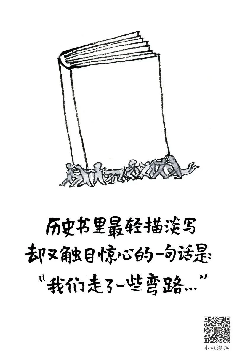 一本大书压在地上,下面一群小人儿被压得喘不过气,有人趴着,有人跪着,有人伸着手挣扎。这句话听着轻,可背后是多少血泪、多少代价。 每一次“弯路”,都不是偶然,是选择错了方向,是站错了队,是信错了人。历史不会记错事,只会轻轻带过,就像它从不告诉你,那些牺牲的人,到底有多痛。 可我们活着的人,不该忘了这些弯路。记住它们,不是为了怨恨,是为了别再重蹈覆辙。