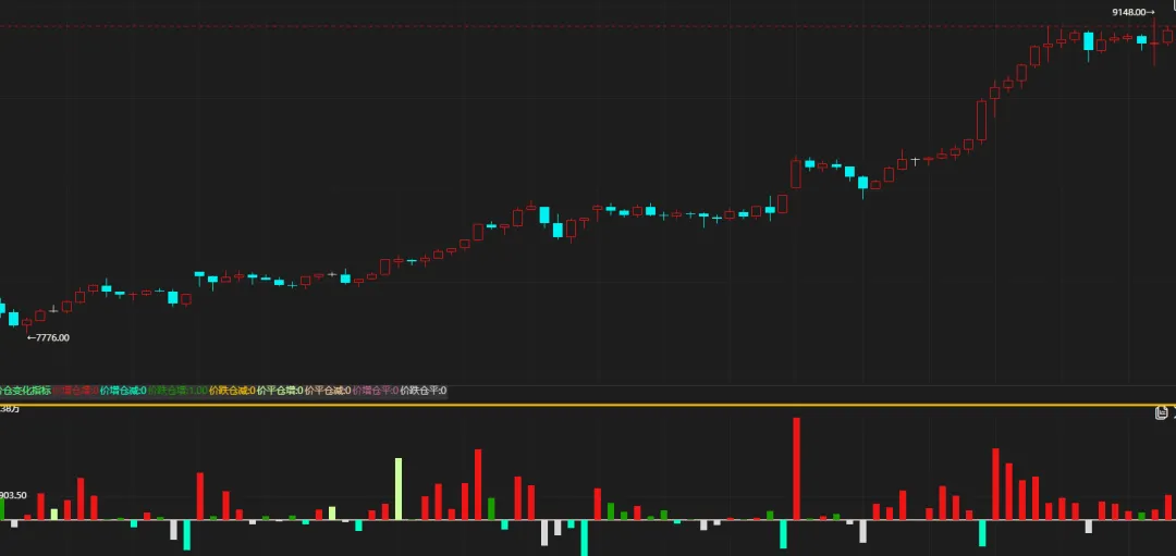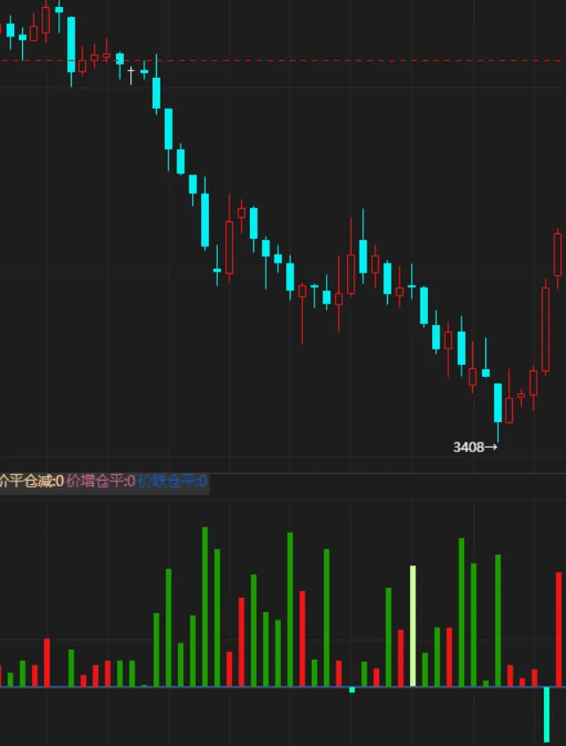 STICKLINE(价增仓减,0,VOLINSTK-REF(VOLINSTK,1),2,0),COLORCYAN;