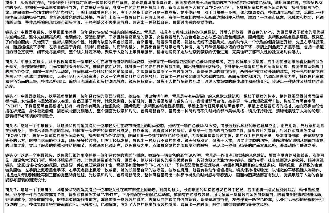 相当于把别人拍好的视频,直接逆向还原成了一套标准的中文拍摄提示词。