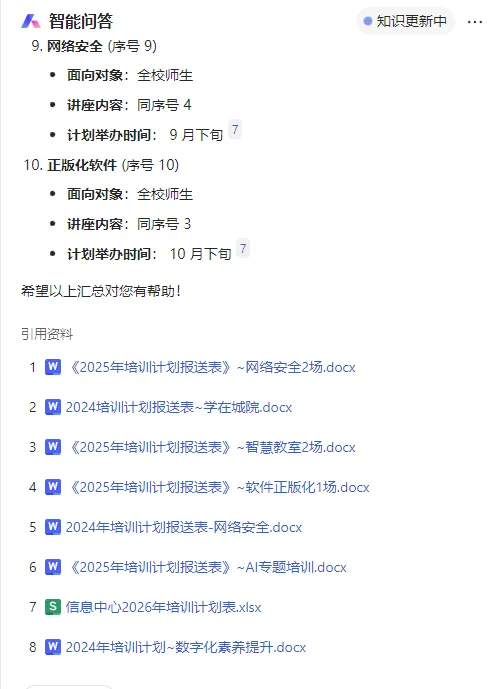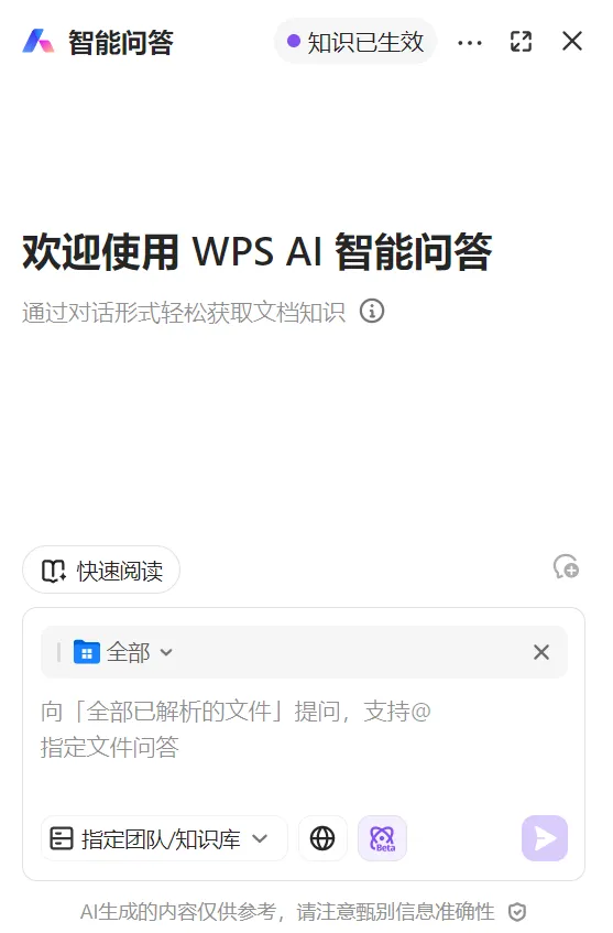 WPS目前已上线智能问答,启用后,批量云文档中快速查询文件位置、解析文件内容等统统搞定!担心输出内容无中生有?放心,每个问答都会展示引用资料,帮助师生精准溯源,检查核对。