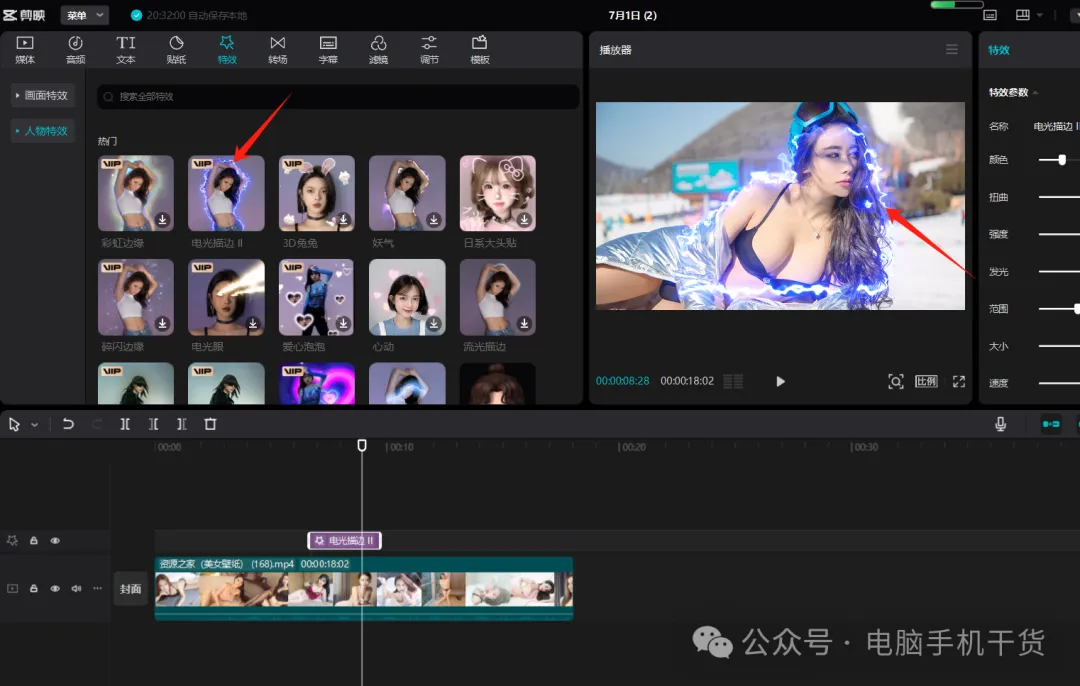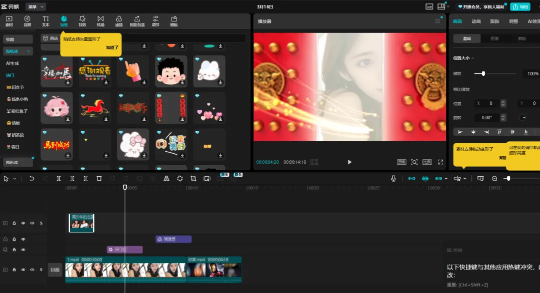 进入创作界面,随便拖入2段视频,添加里面的VIP素材特效