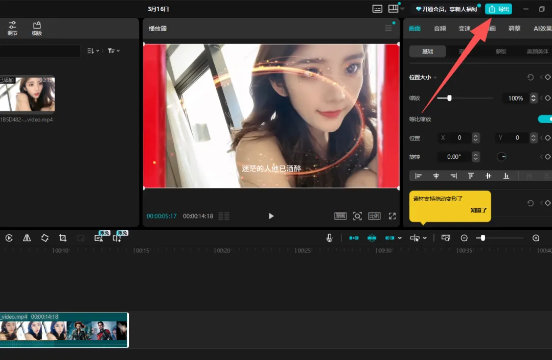 这时候我们直接点击右上角的导出,是需要你开通会员的
