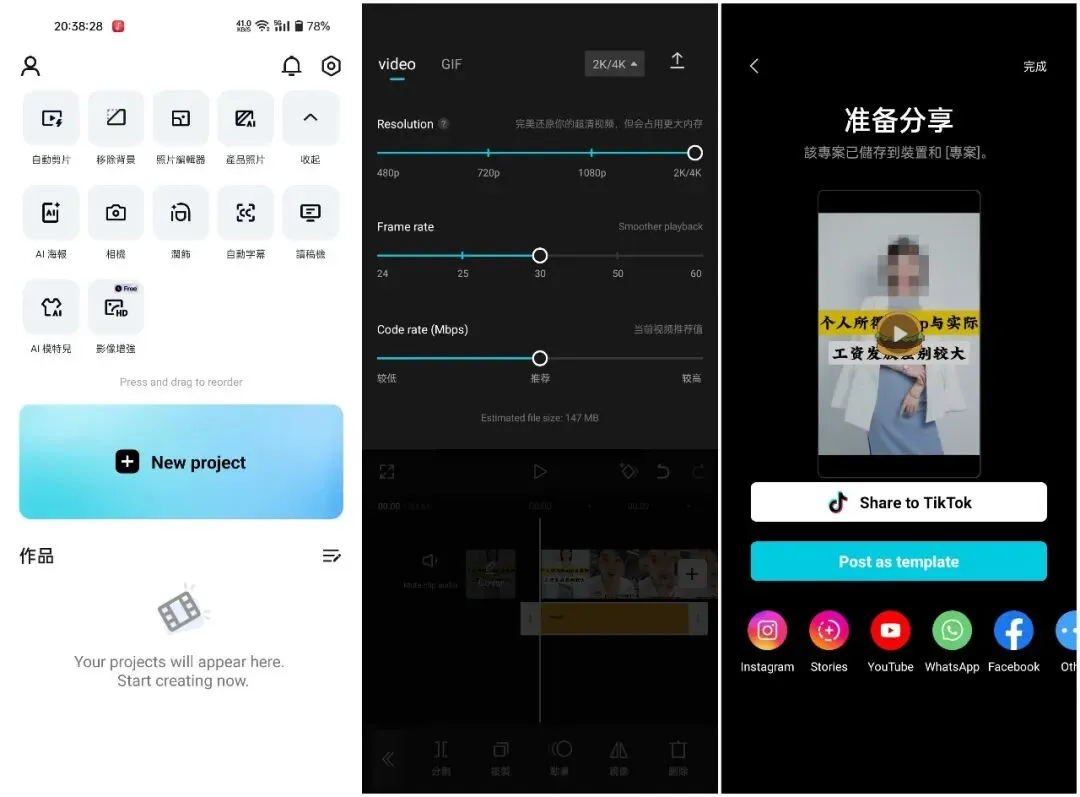 这款安卓版,也是可以直接免登录导出的,可以导出2K/4K画质