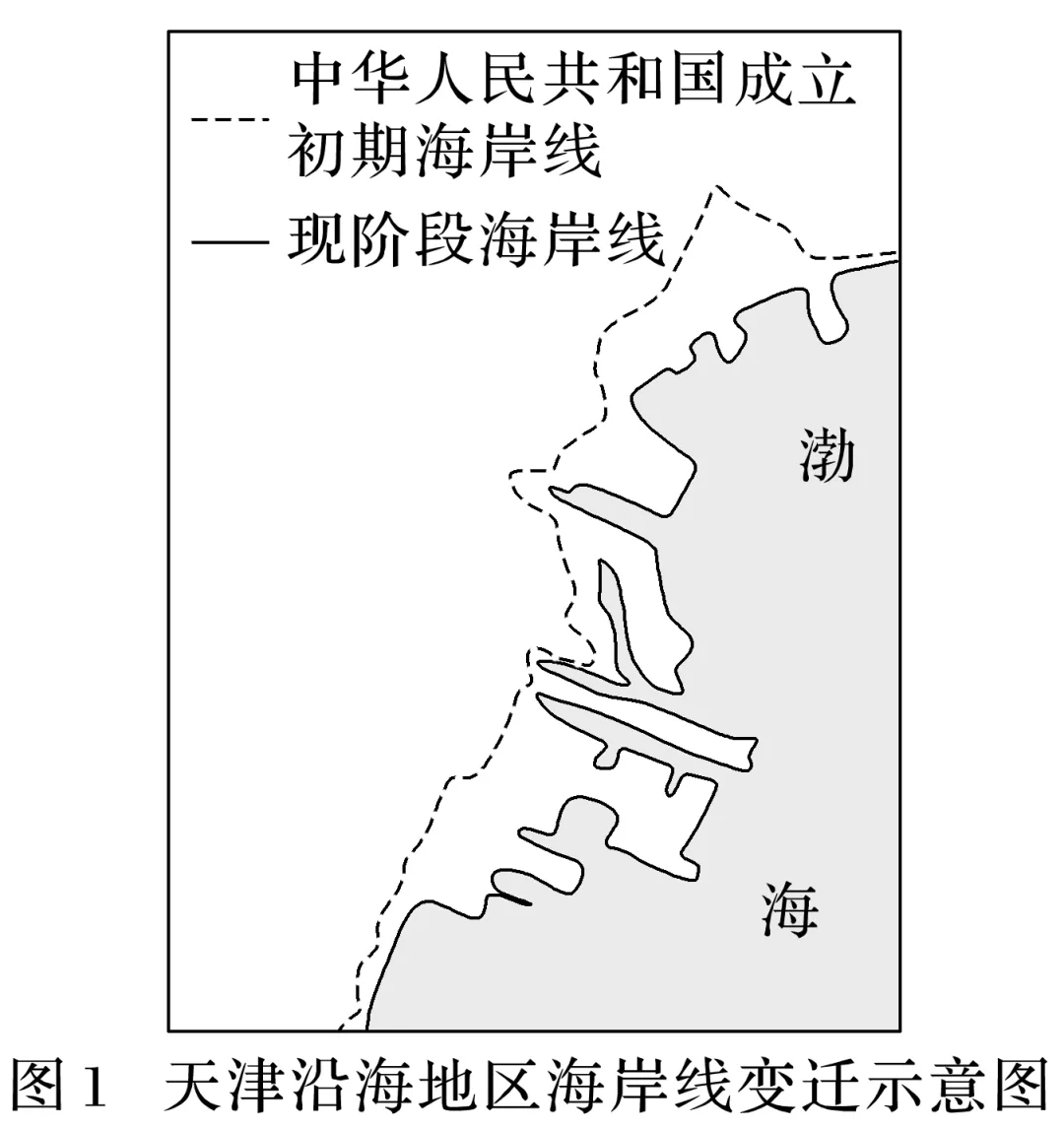 (2024·湖北襄阳联考)近年来,伴随天津滨海新区及周边地区的快速发展,各类海洋及防灾、减灾工程的逐年建设,天津及附近海岸带的面貌发生了很大的变化。读图,完成1~2题。