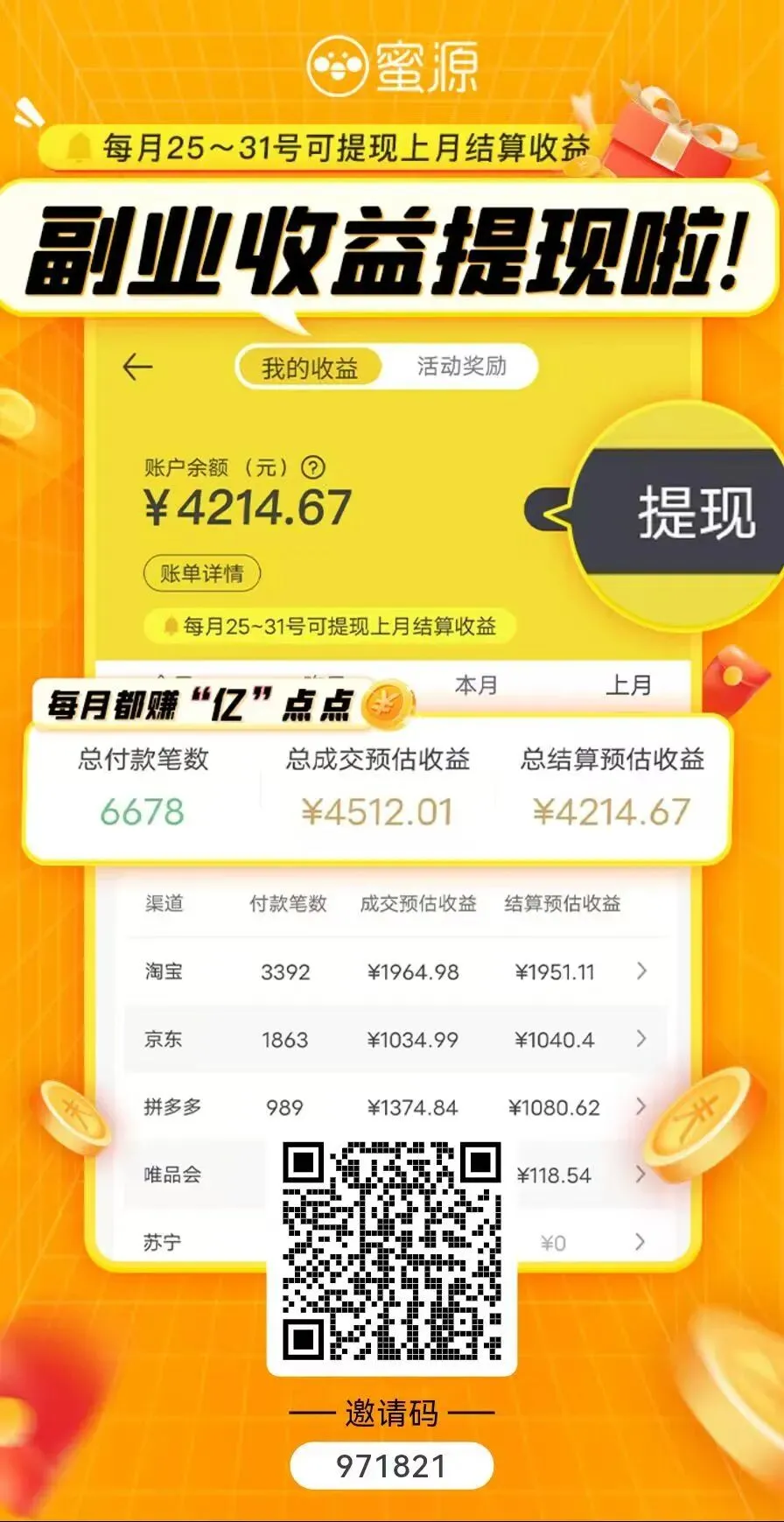 大家好呀!我是宇宇,我做蜜源已经7年多了,我的蜜源邀请码是971821,今天来和大家聊聊蜜源怎么做才能赚钱?