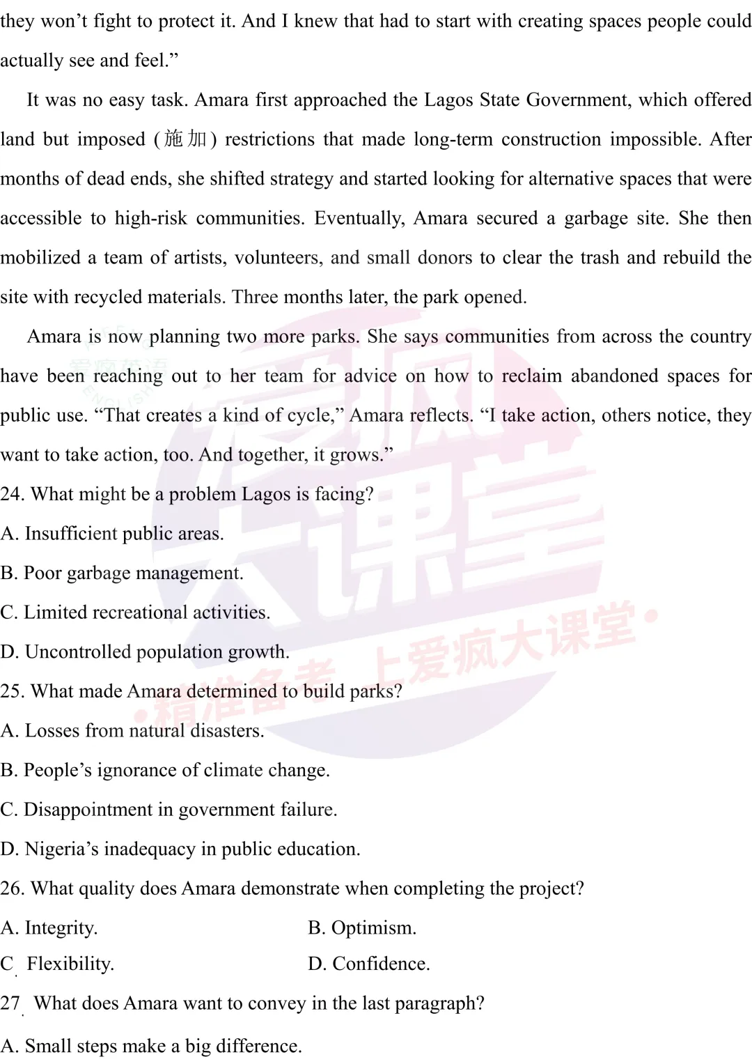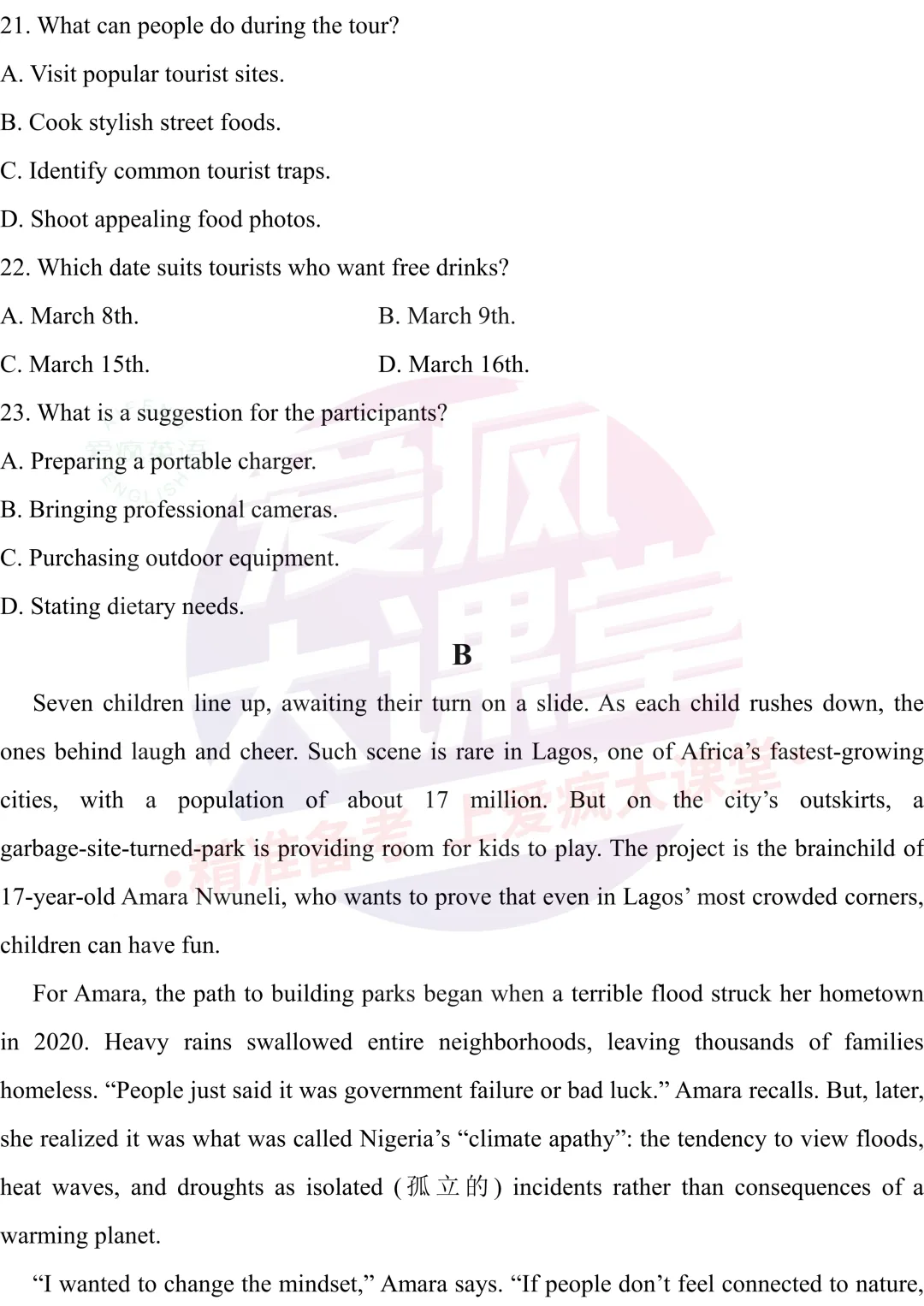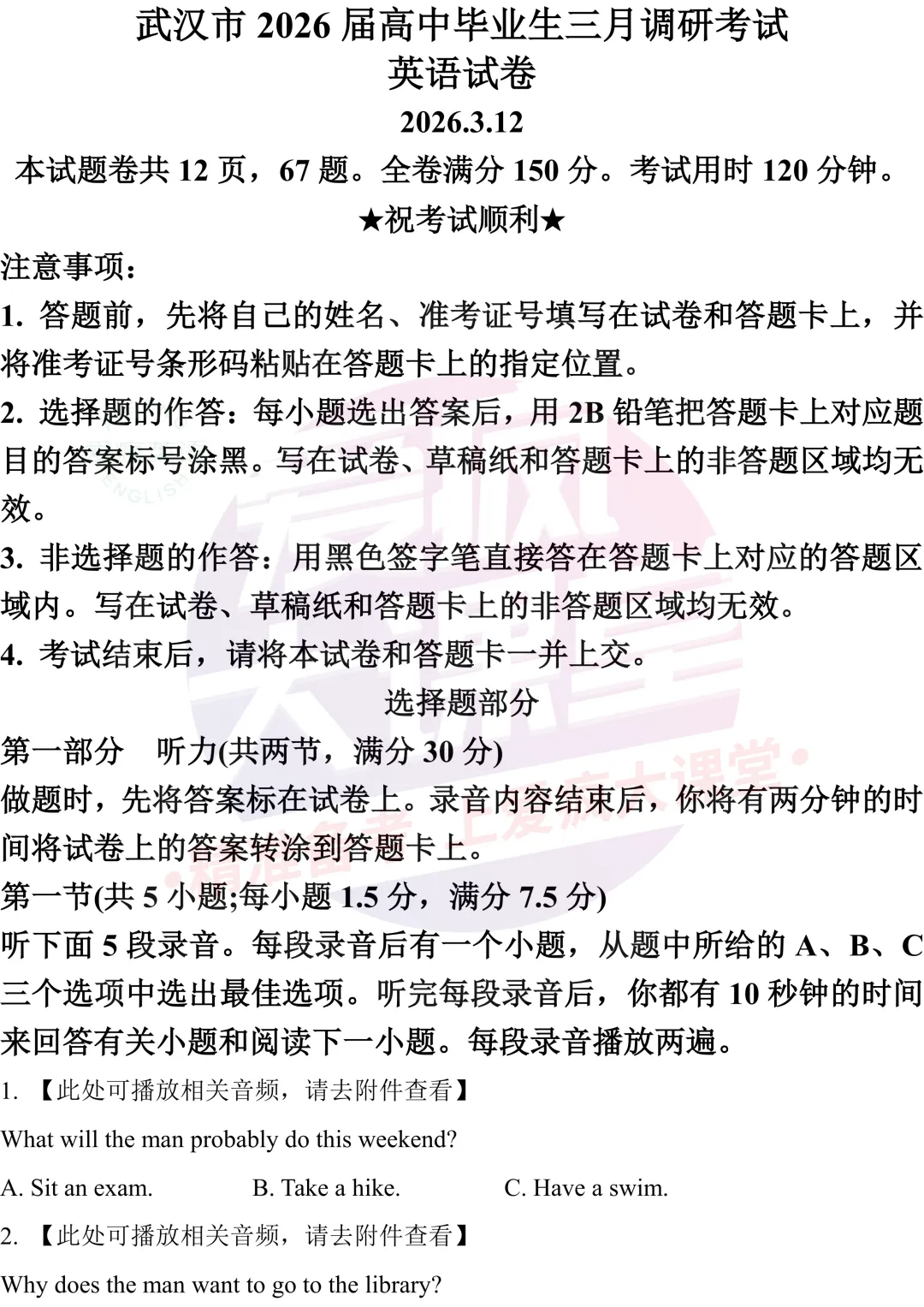 试题资源 | 2026届武汉三月调研英语试题(文档免费下载)