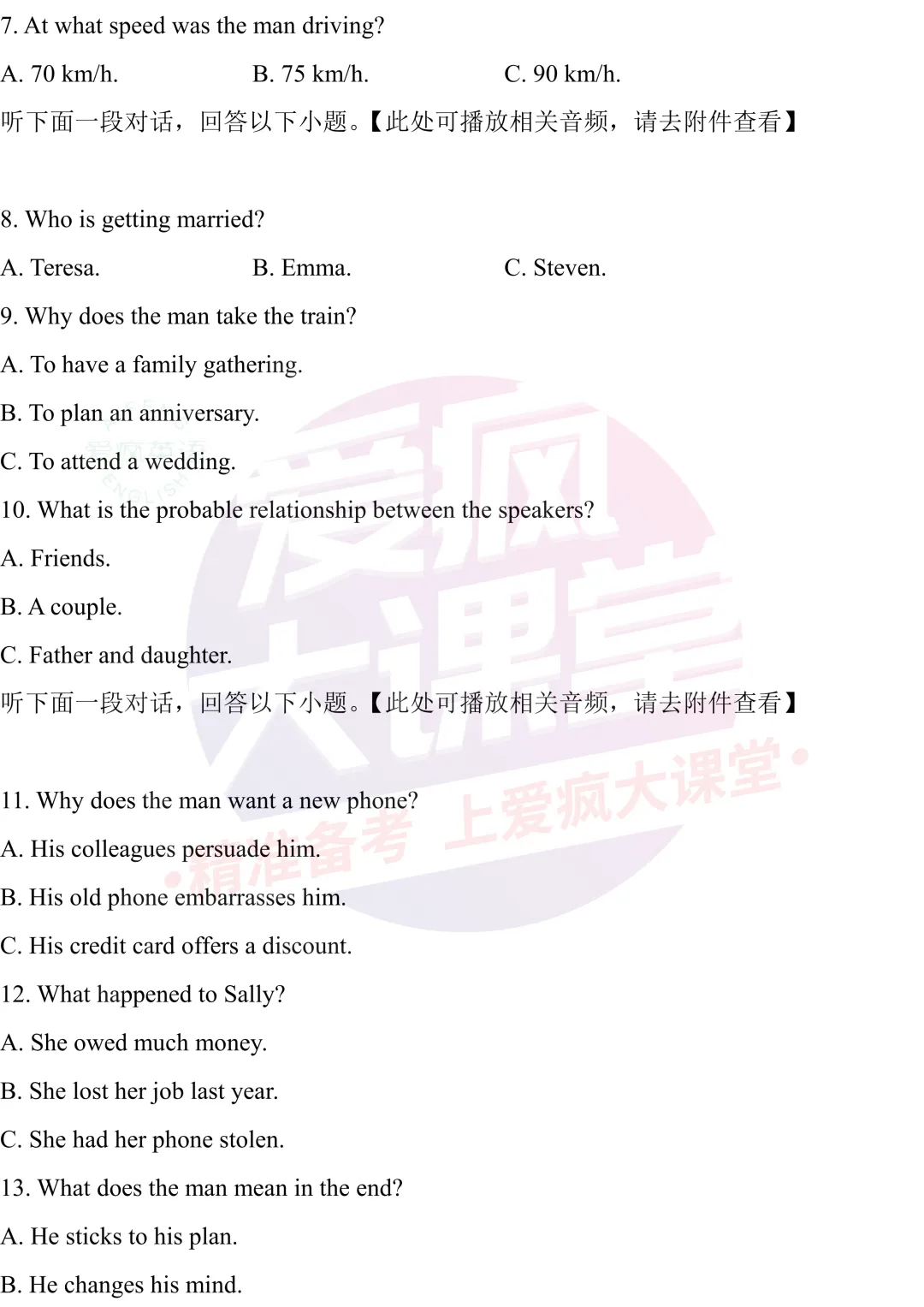 私信回复“试题下载”