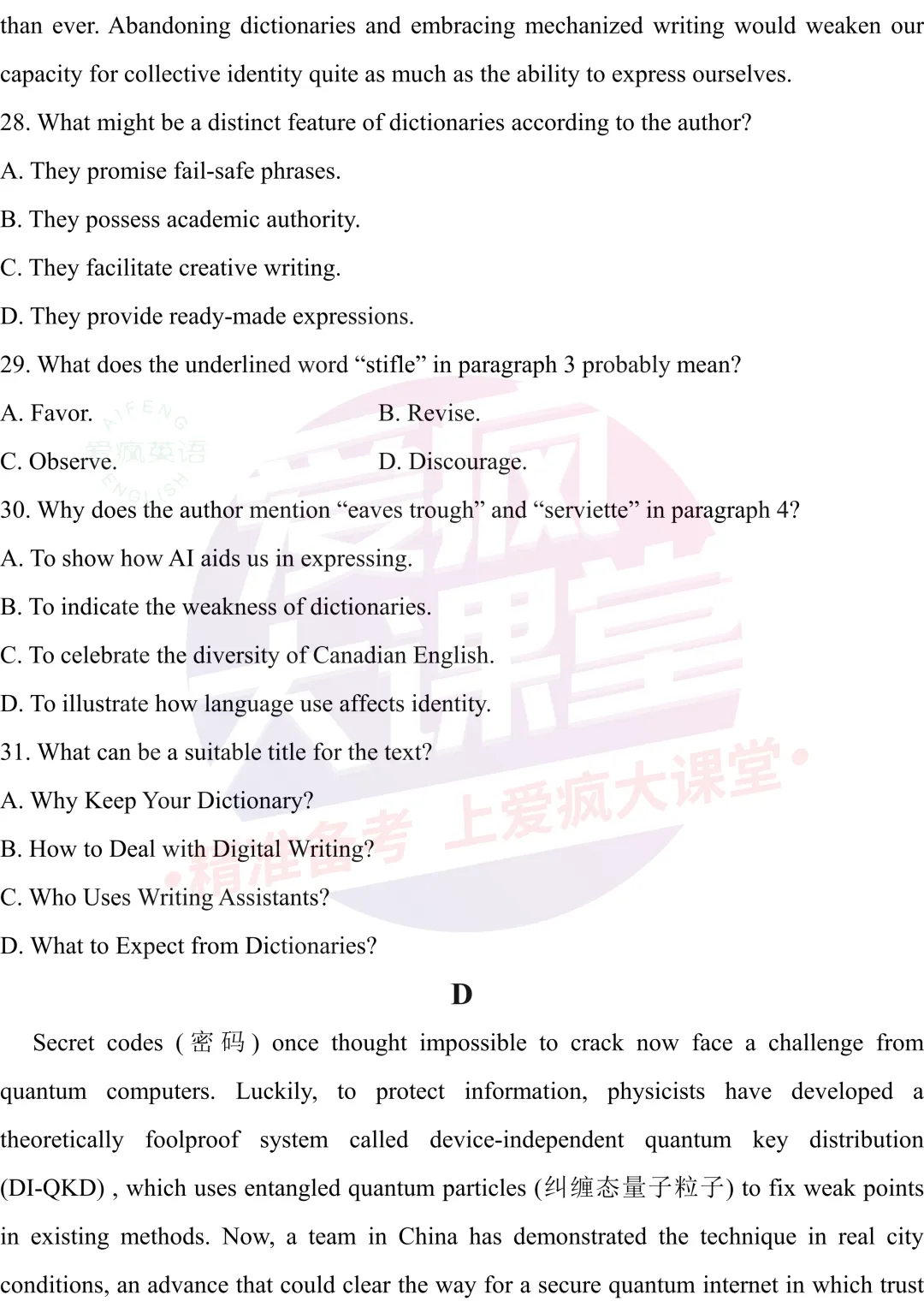 试题原文