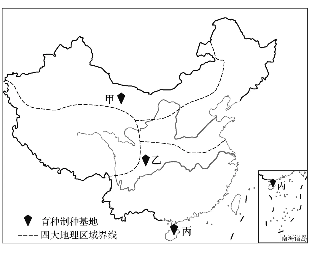 种子被称为农业的“芯片”,是保障国家粮食安全和主要农产品有效供给的重要基础,目前我国已建成三大国家级育种制种基地。下图为“三大国家级育种制种基地分布图”。据此完成5~7题。