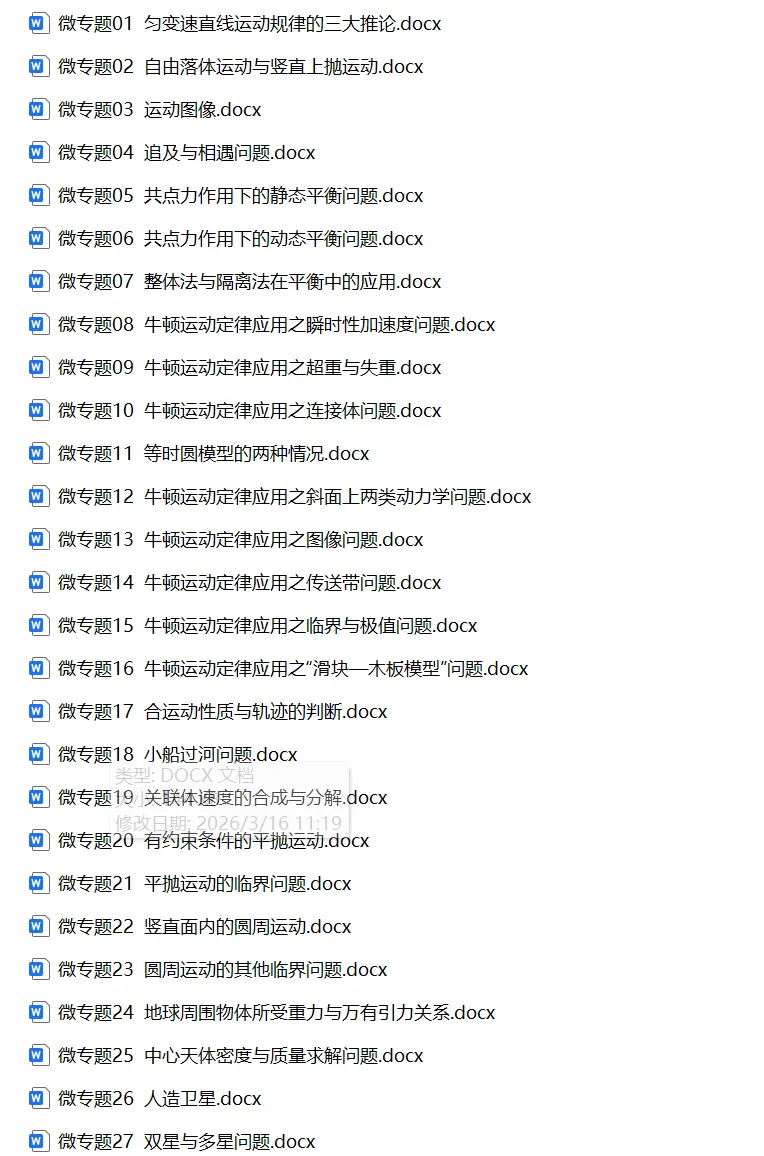 /高中物理微专题100篇 | 可下载打印/建议领取高清打印版源文件!