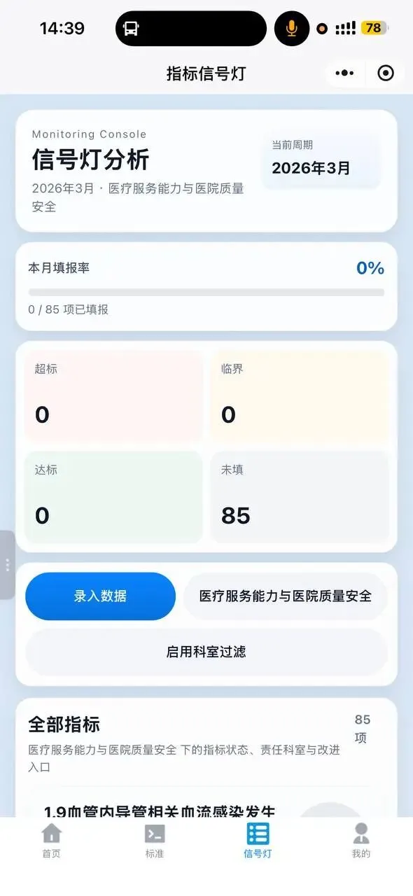 - 本月填报率:0%(0/85 项已填报)