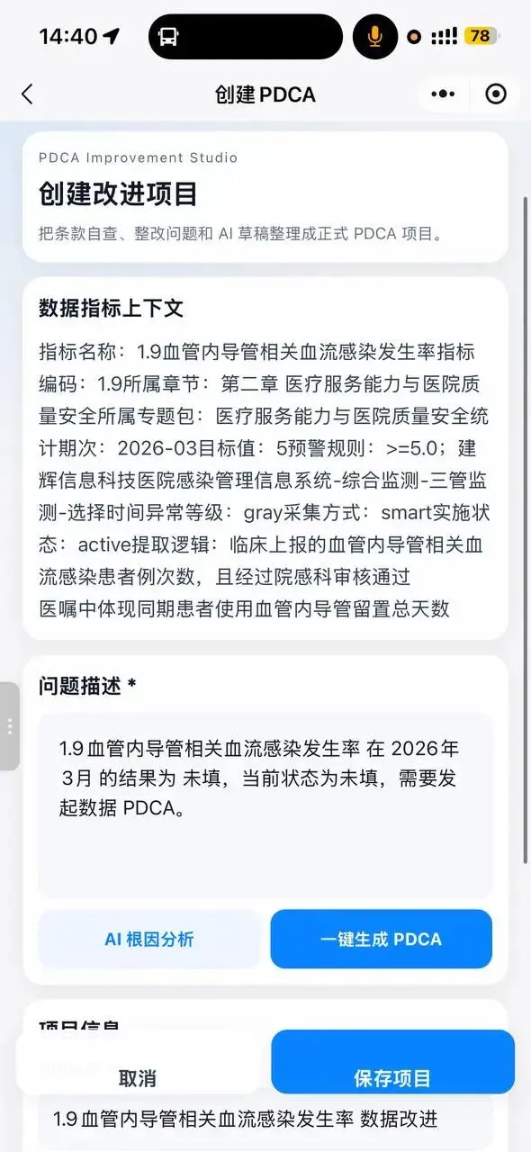 点击”发起数据PDCA”后,系统会自动生成问题描述。