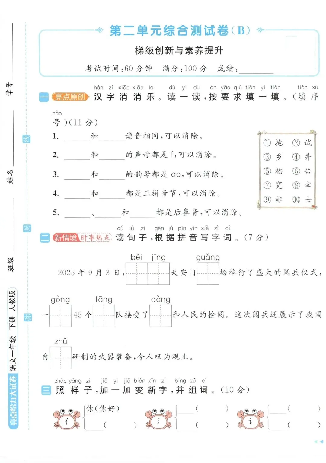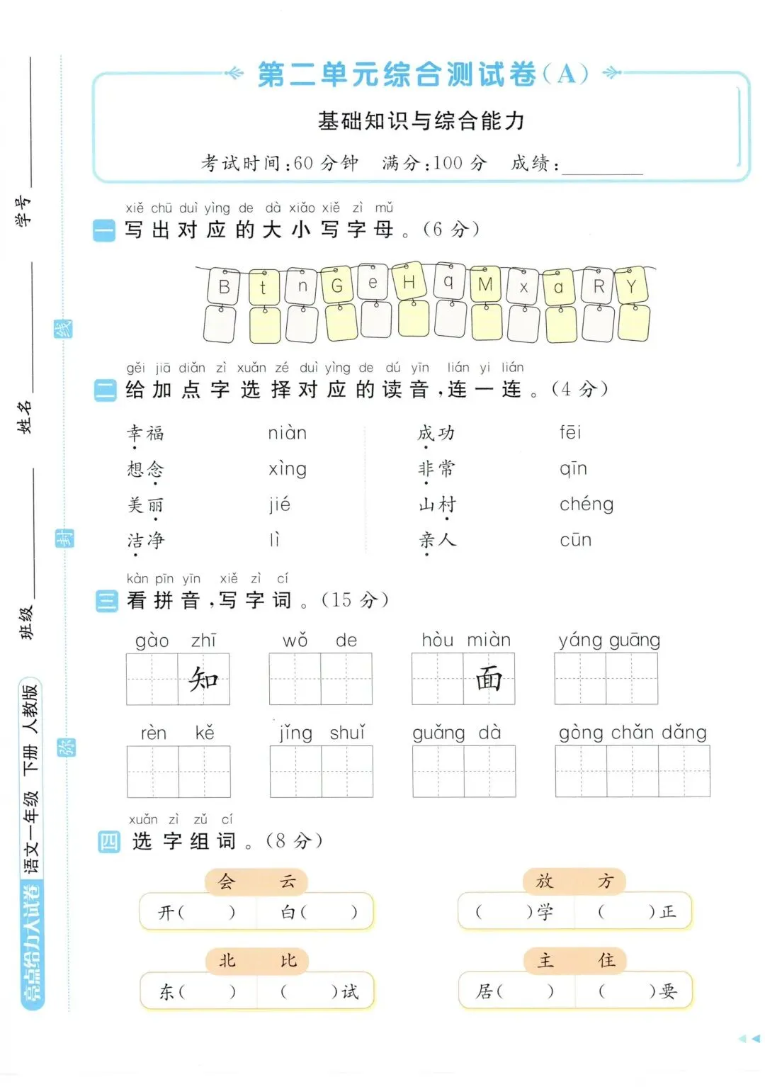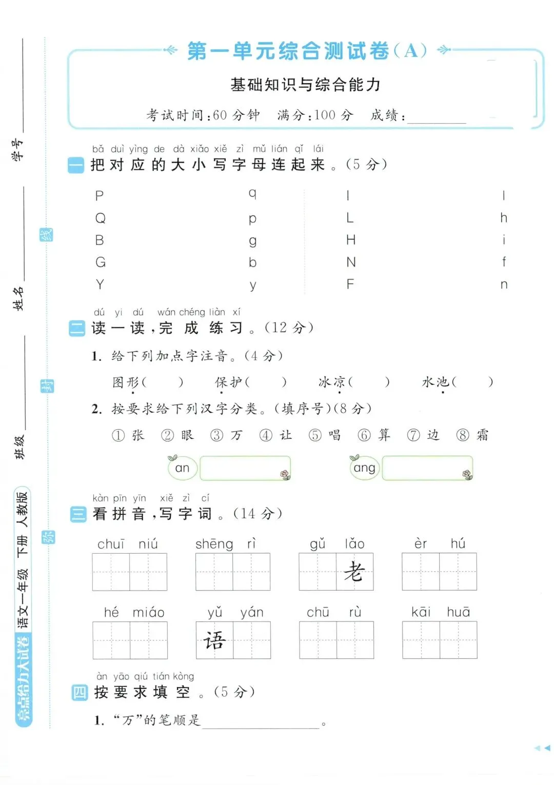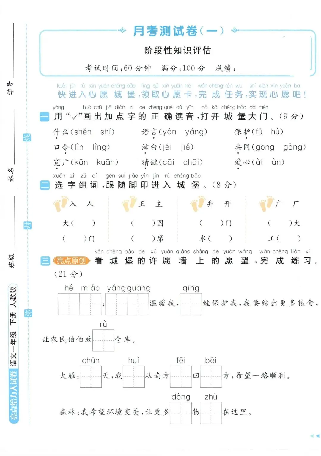 2026春新版一年级下册语文《1-8单元+月考+期中+期末测试卷+期末基础知识复习+专项提优训练》电子版可打印。