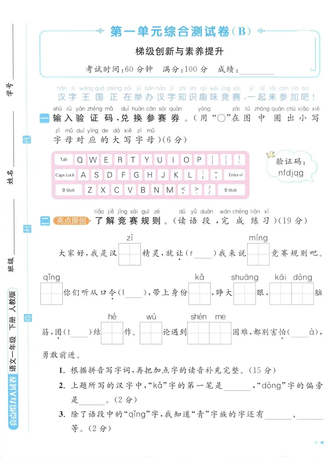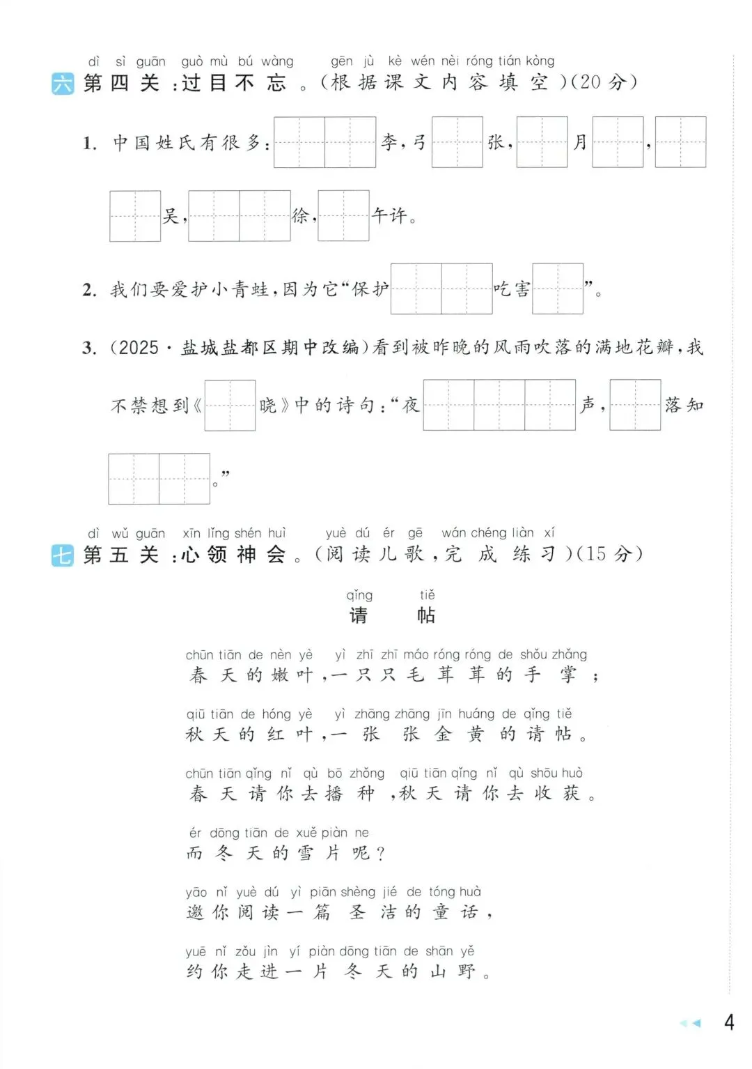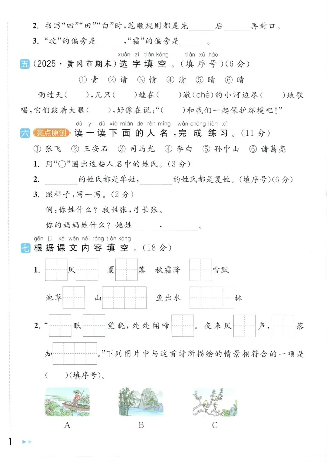2026春新版一年级下册语文《1-8单元+月考+期中+期末测试卷+期末基础知识复习+专项提优训练》电子版可打印。