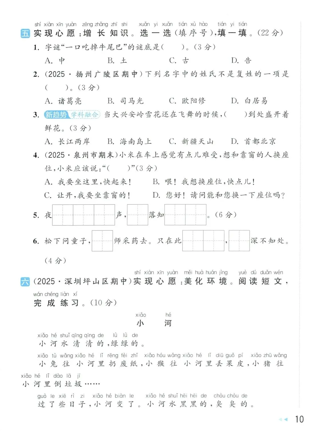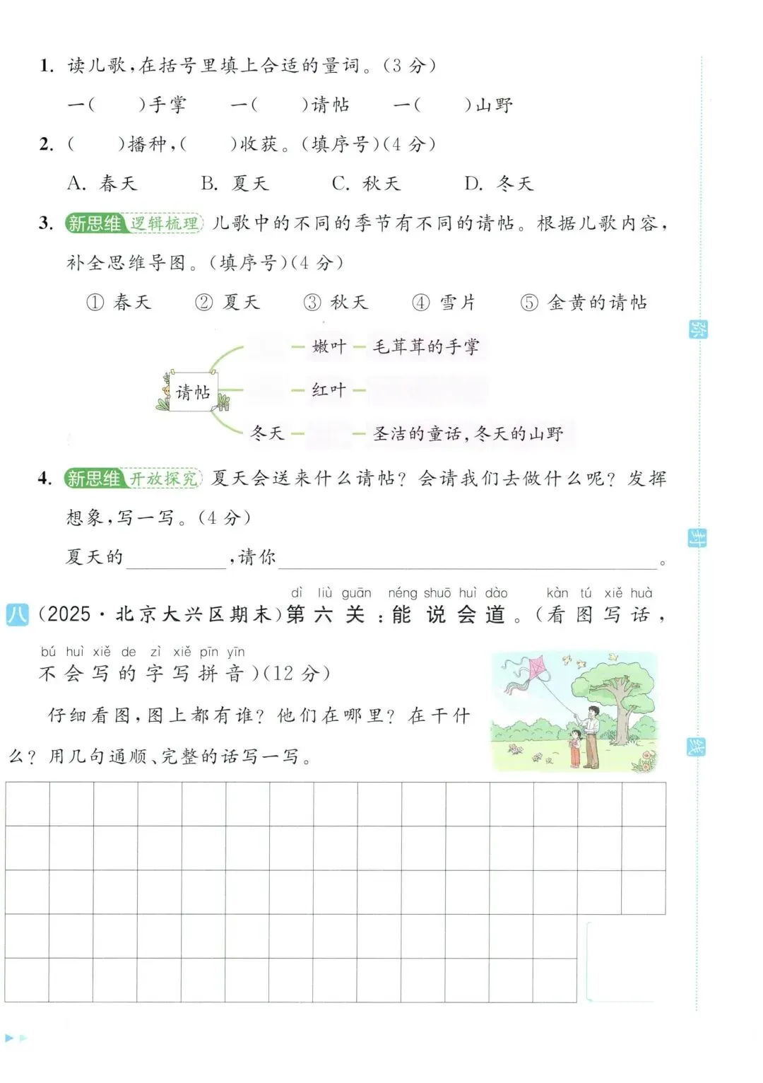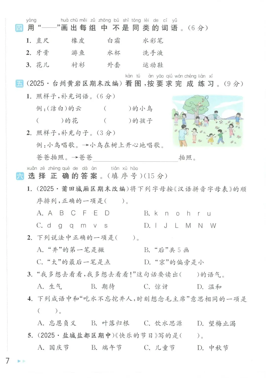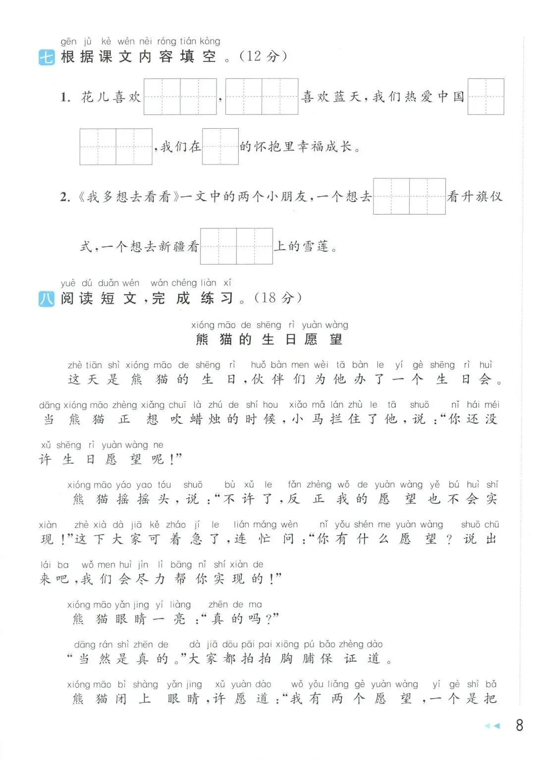 2026春新版一年级下册语文《1-8单元+月考+期中+期末测试卷+期末基础知识复习+专项提优训练》电子版可打印。