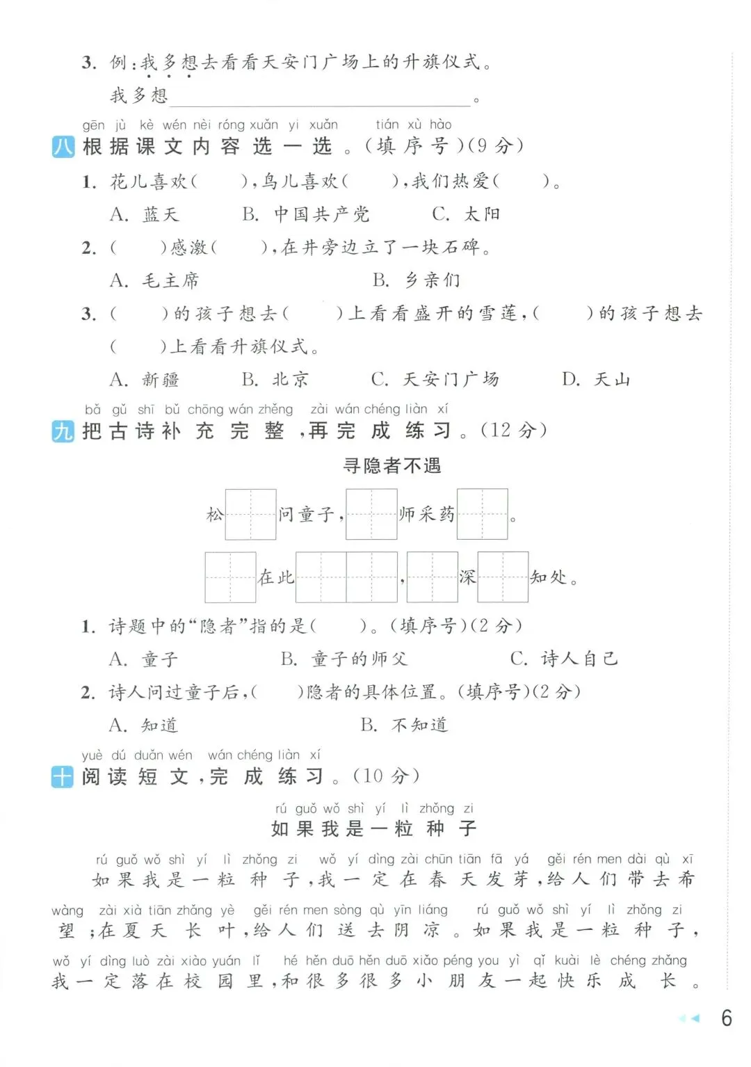 2026春新人教版一年级下册语文《1-8单元+月考+期中+期末测试卷+期末基础知识复习+专项提优训练》电子版