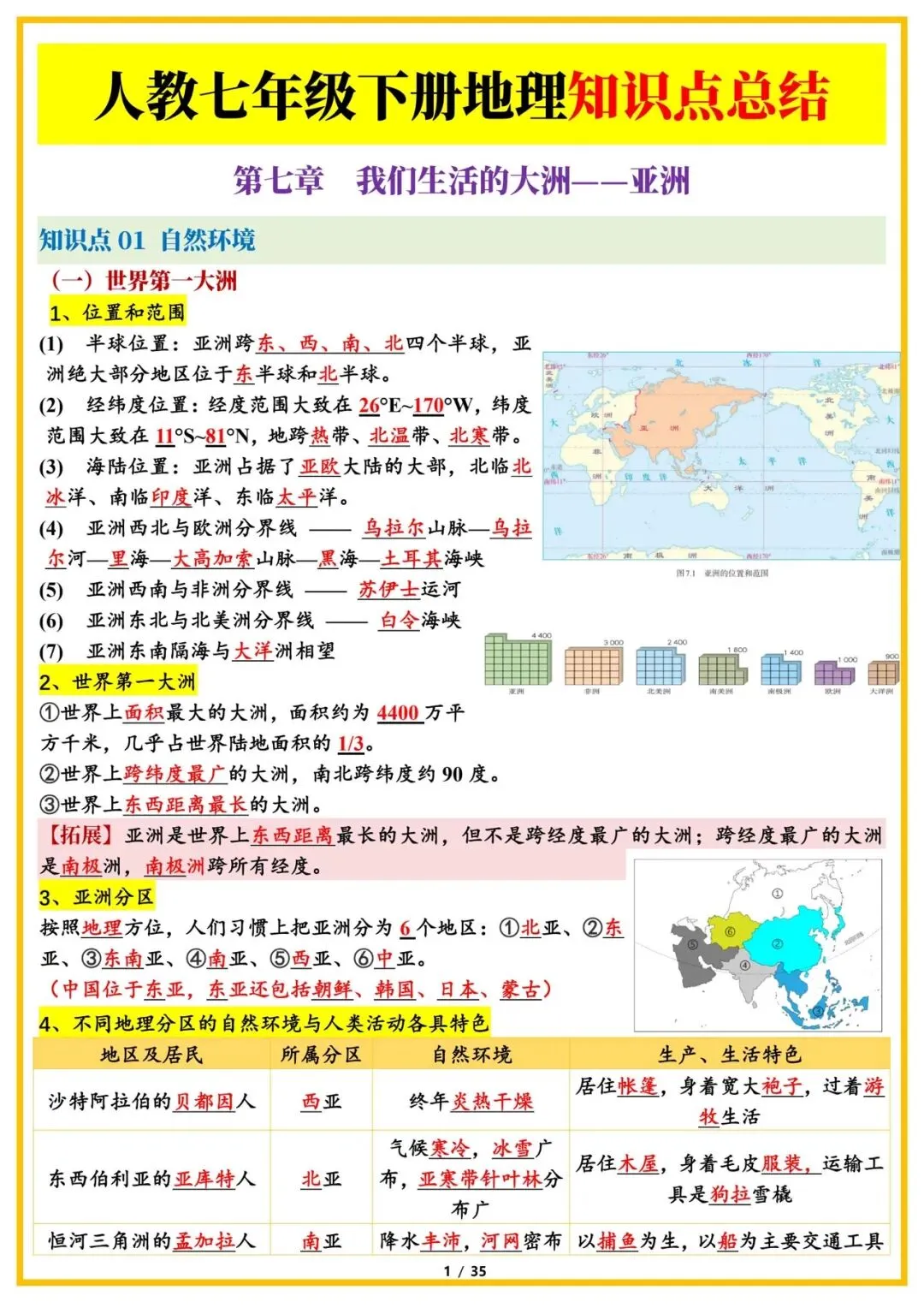 大家好,今天老师整理了:2026版七年级下册地理知识点总结,可打印电子版!