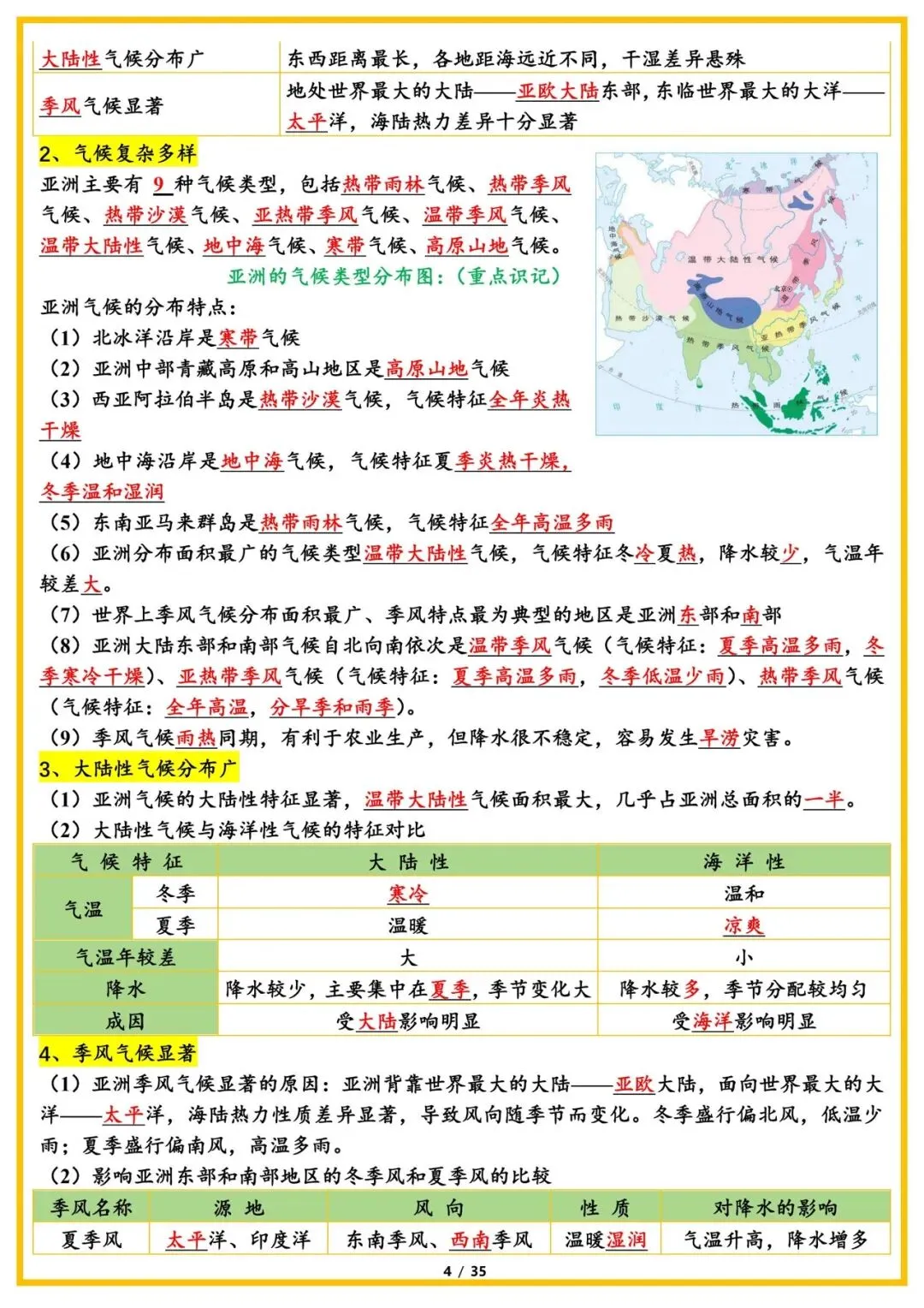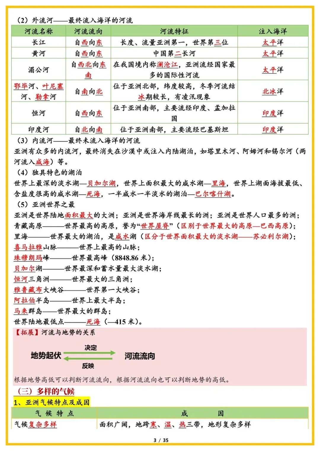 2026版七年级下册地理知识点总结,可打印电子版!