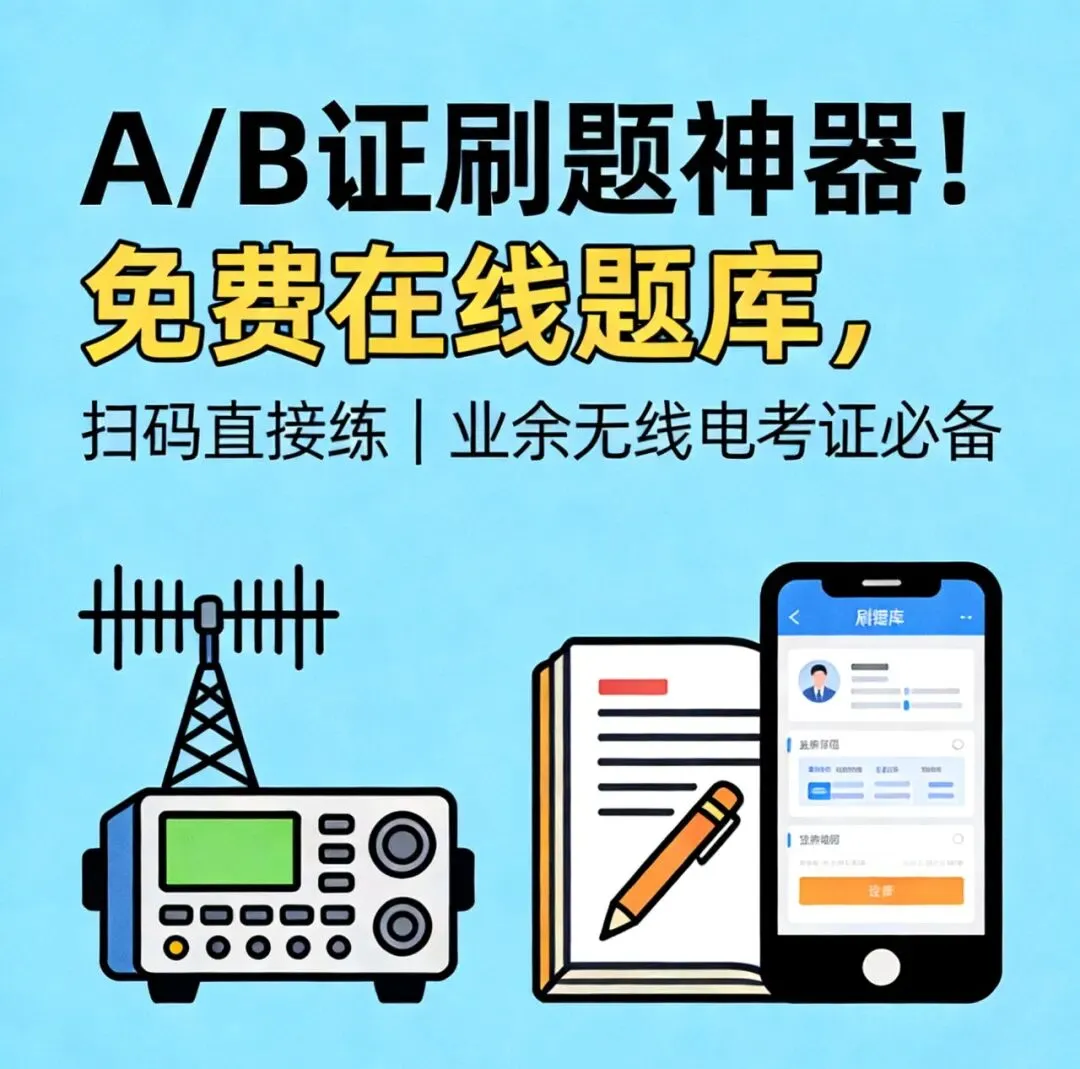 A/B/C证刷题神器!免费在线题库,扫码直接练|业余无线电考证必备