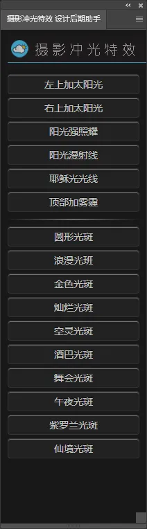 2024最新PS高级光斑冲光插件,一键添加超过 16种光照、耶稣光、慢性射线、阳光、各种场景光斑光效效果,可给照片添加仙境光斑、雾霾,夜景照片添加夜景光斑,简直就是影楼后期必备神器。