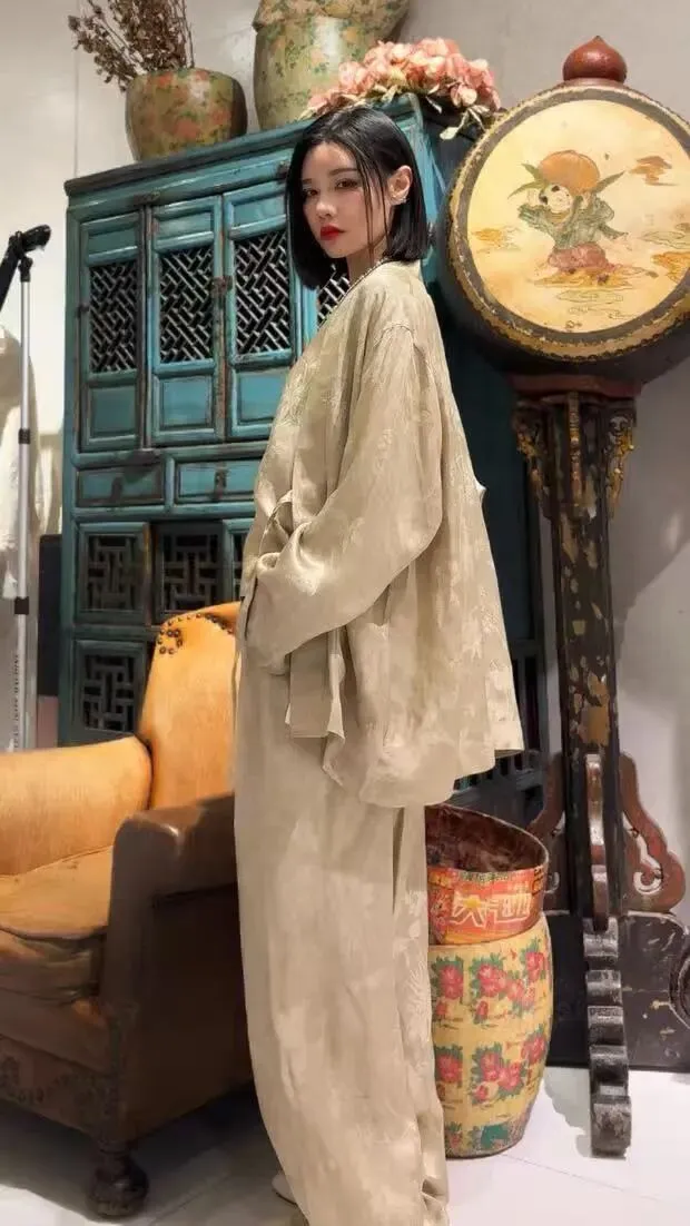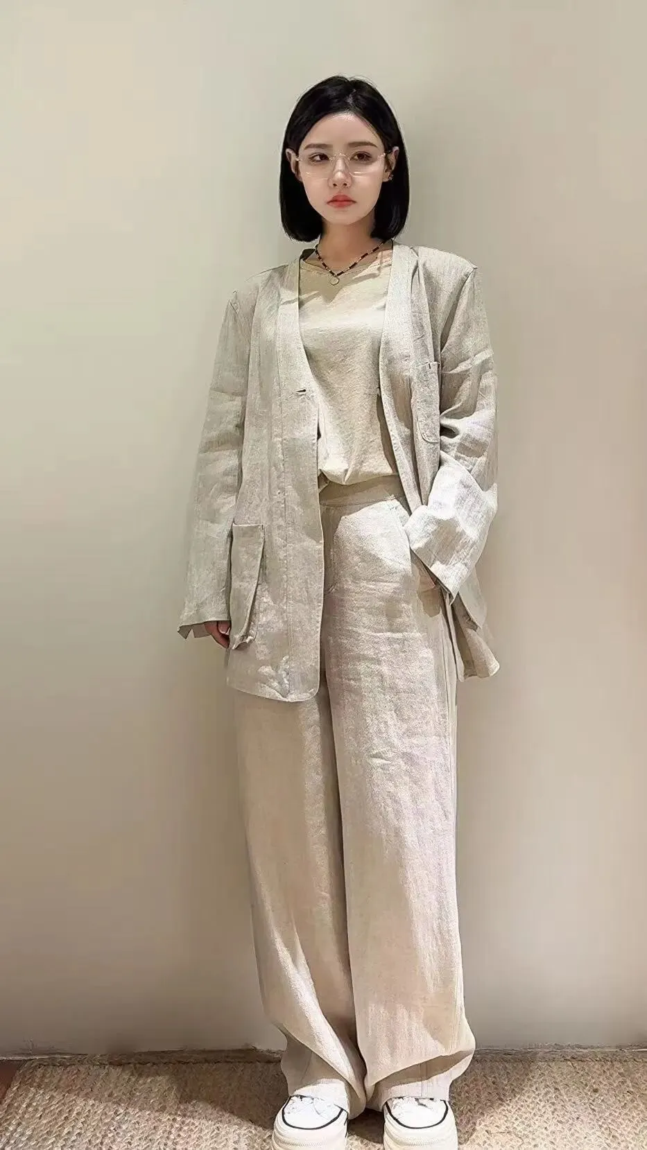 搭配同色系的阔腿西裤,雅致又带有气场,不挑身形