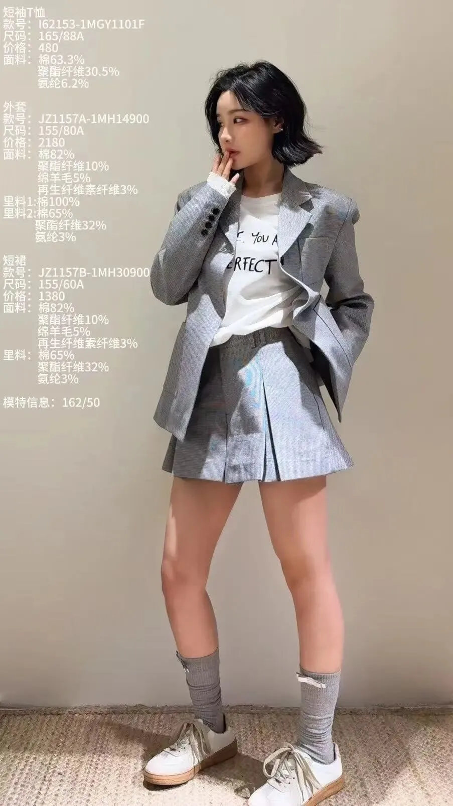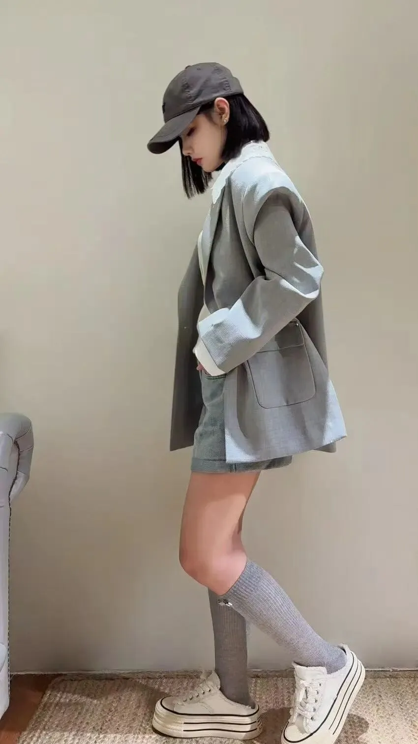 MiuMiu系的浅灰西服套装,合身款的学院风西服