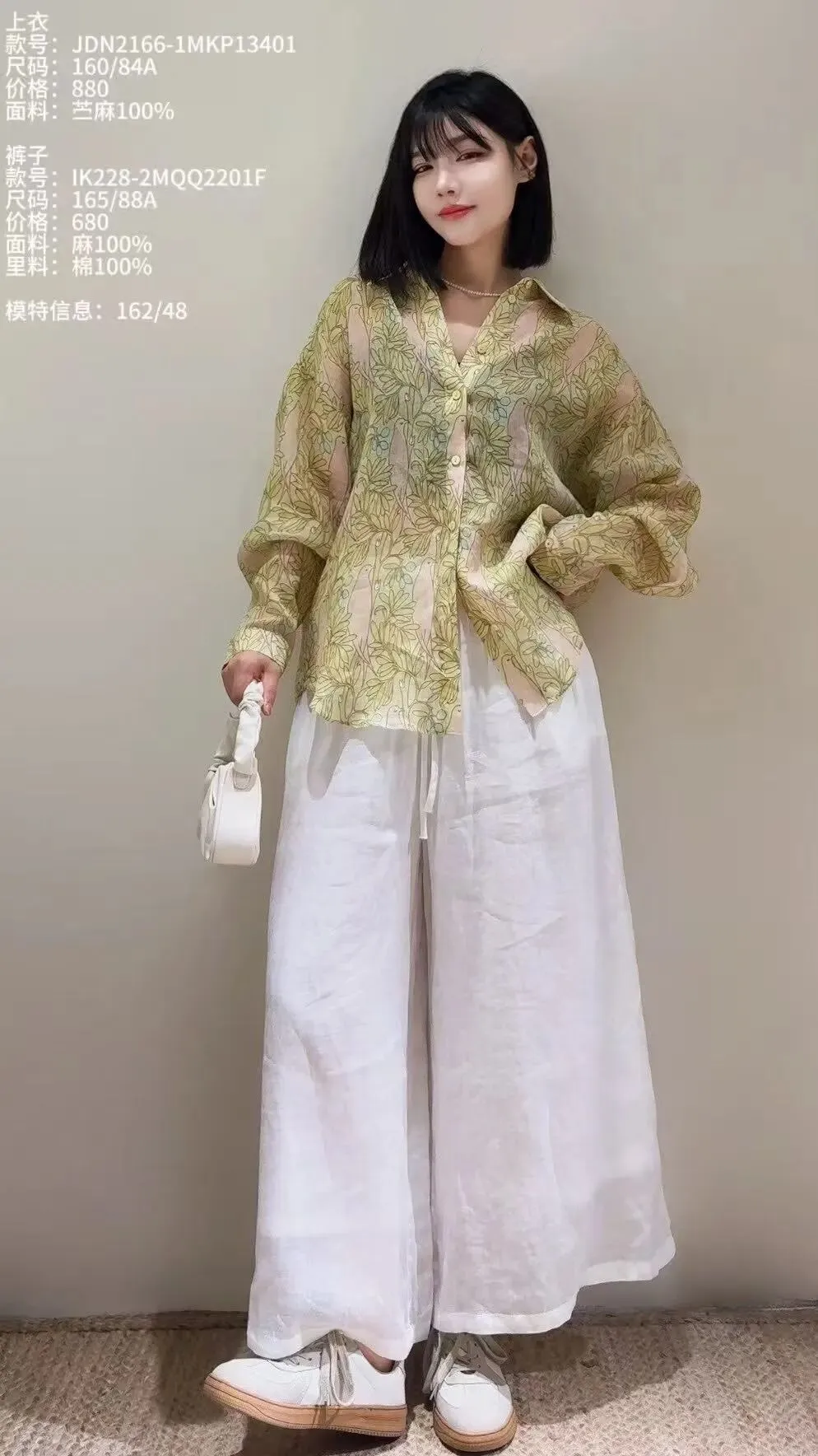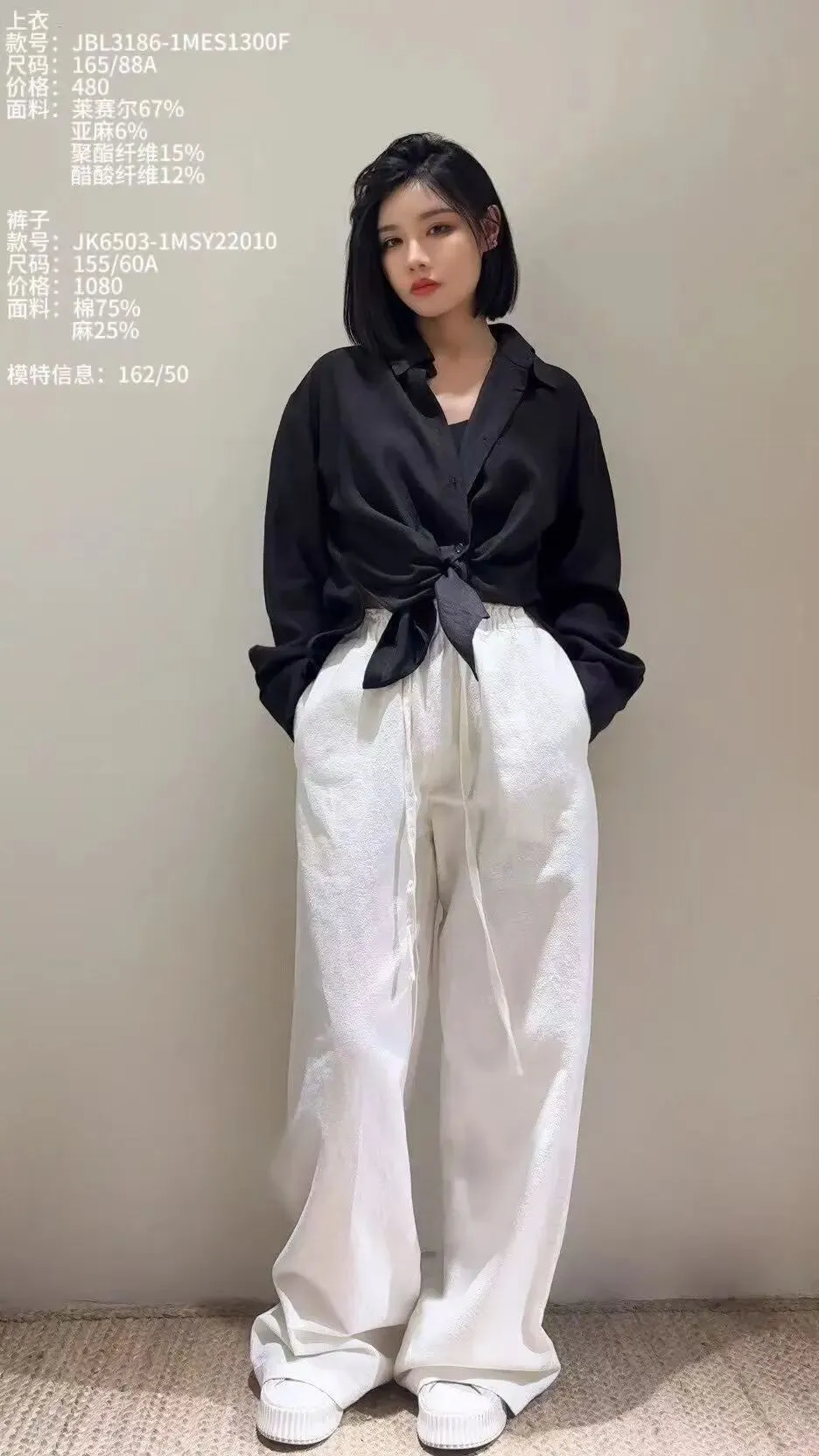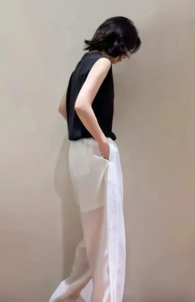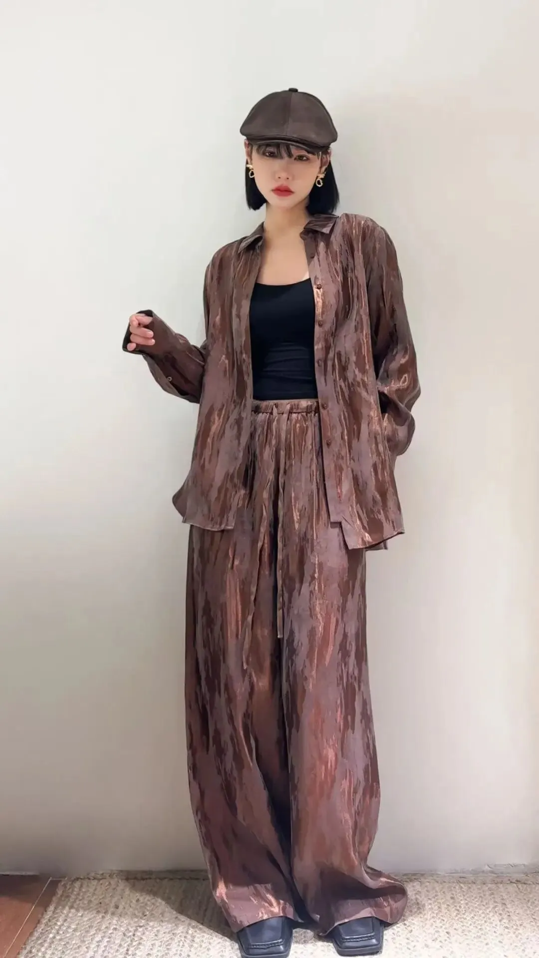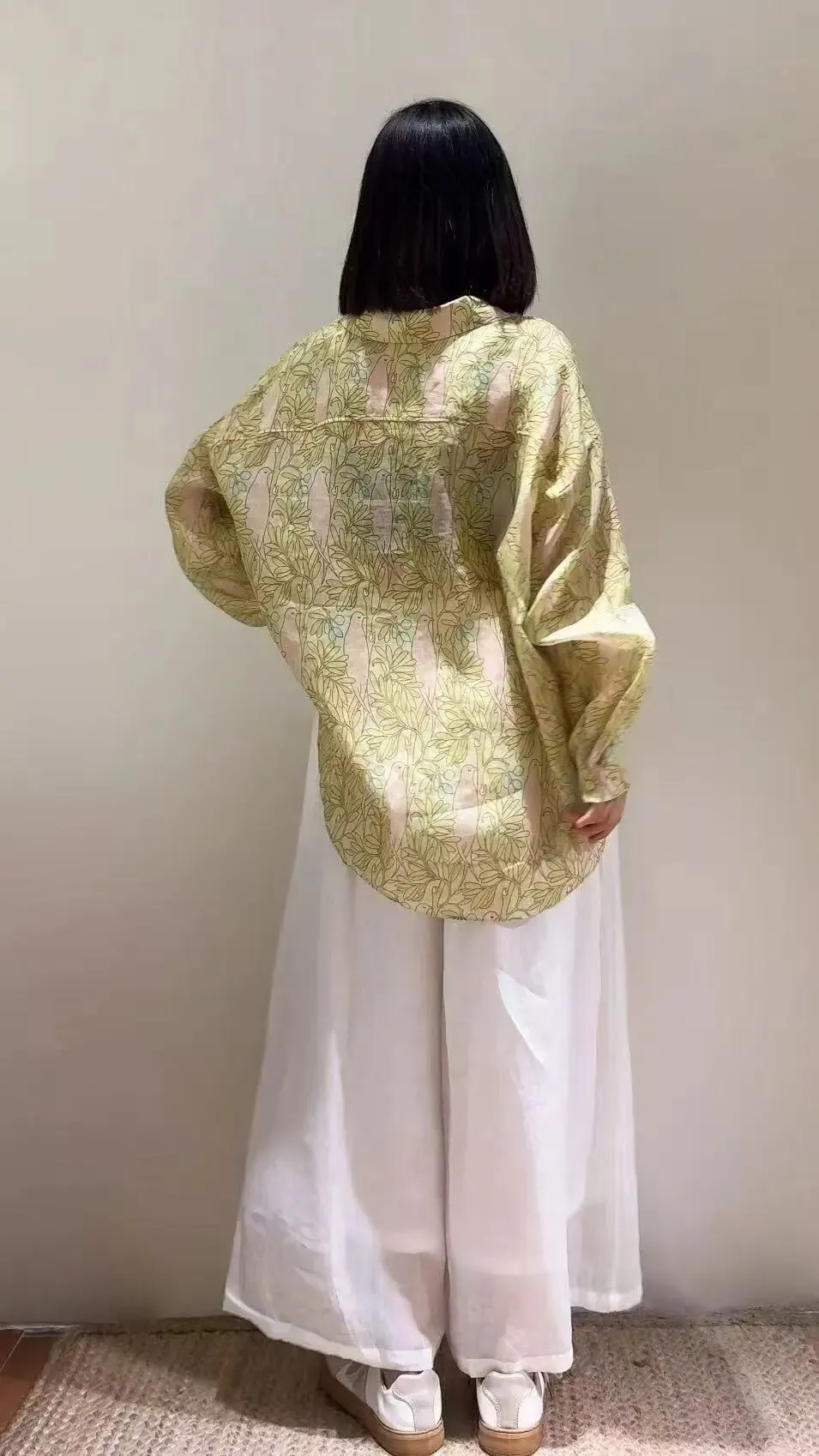 桑蚕丝.棉的拼接款衬衣,搭松紧腰的阔腿长裤✨轻盈.质感