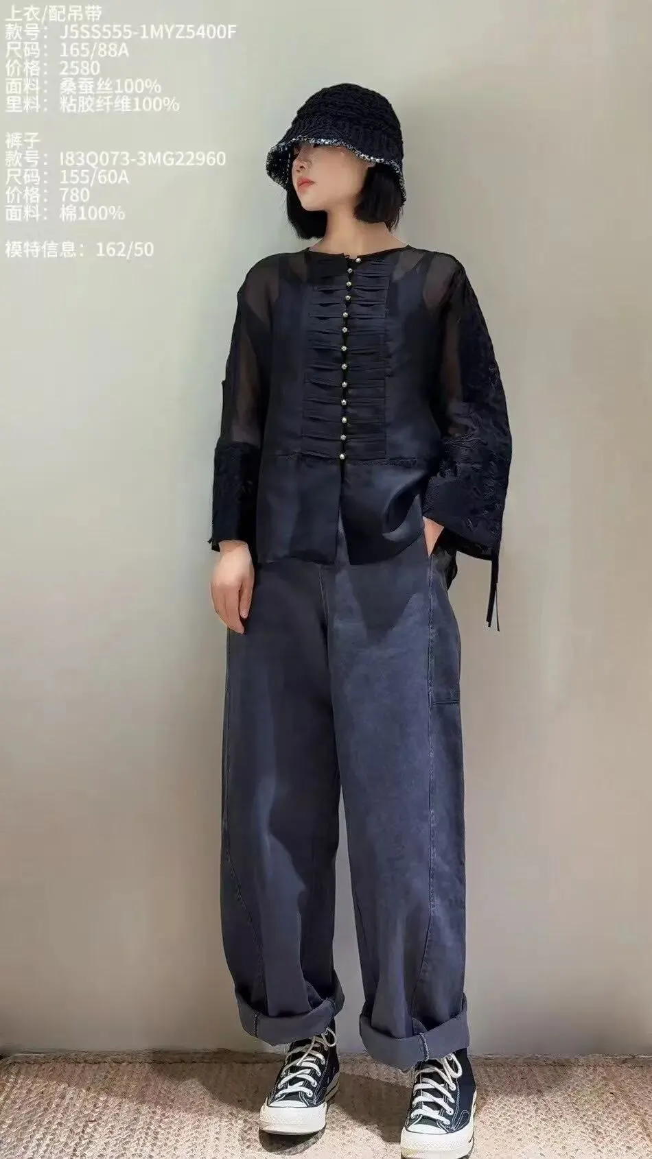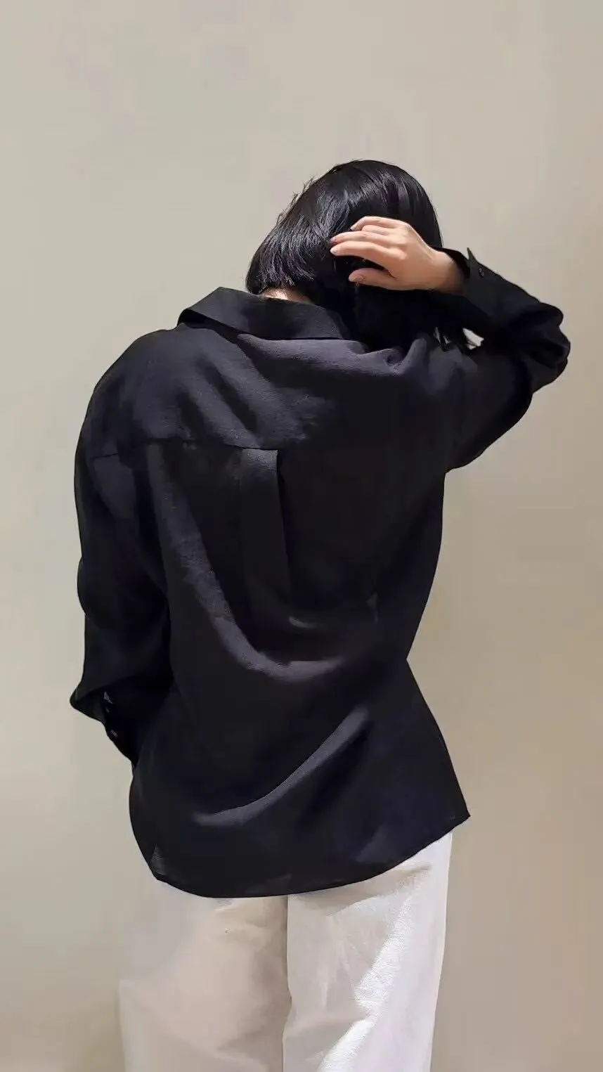 尽显独特韵味黑色,纯桑蚕丝上衣,质感高级
