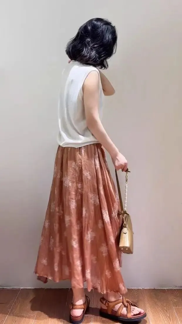 搭配同面料的宽边百褶半裙,有种智性范儿